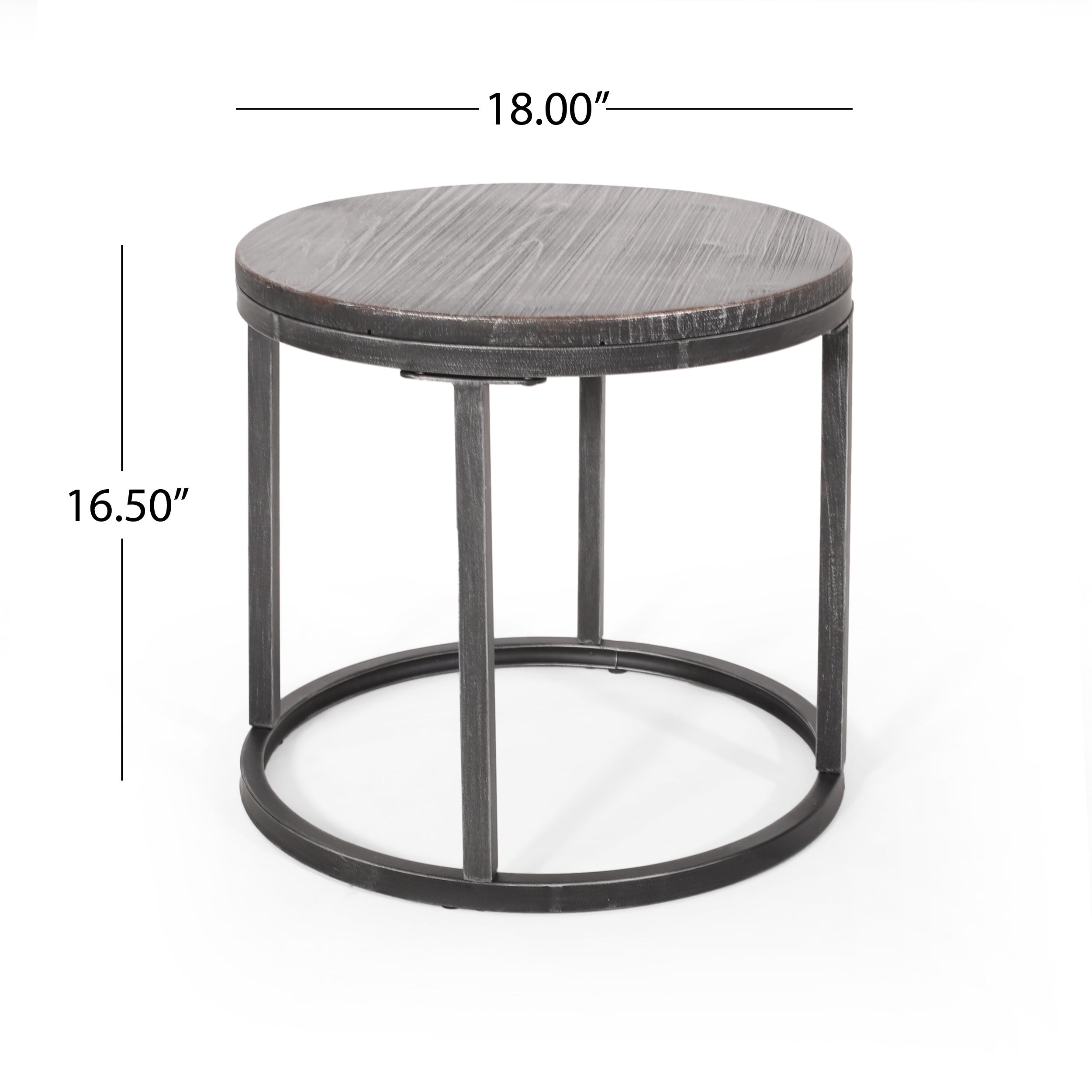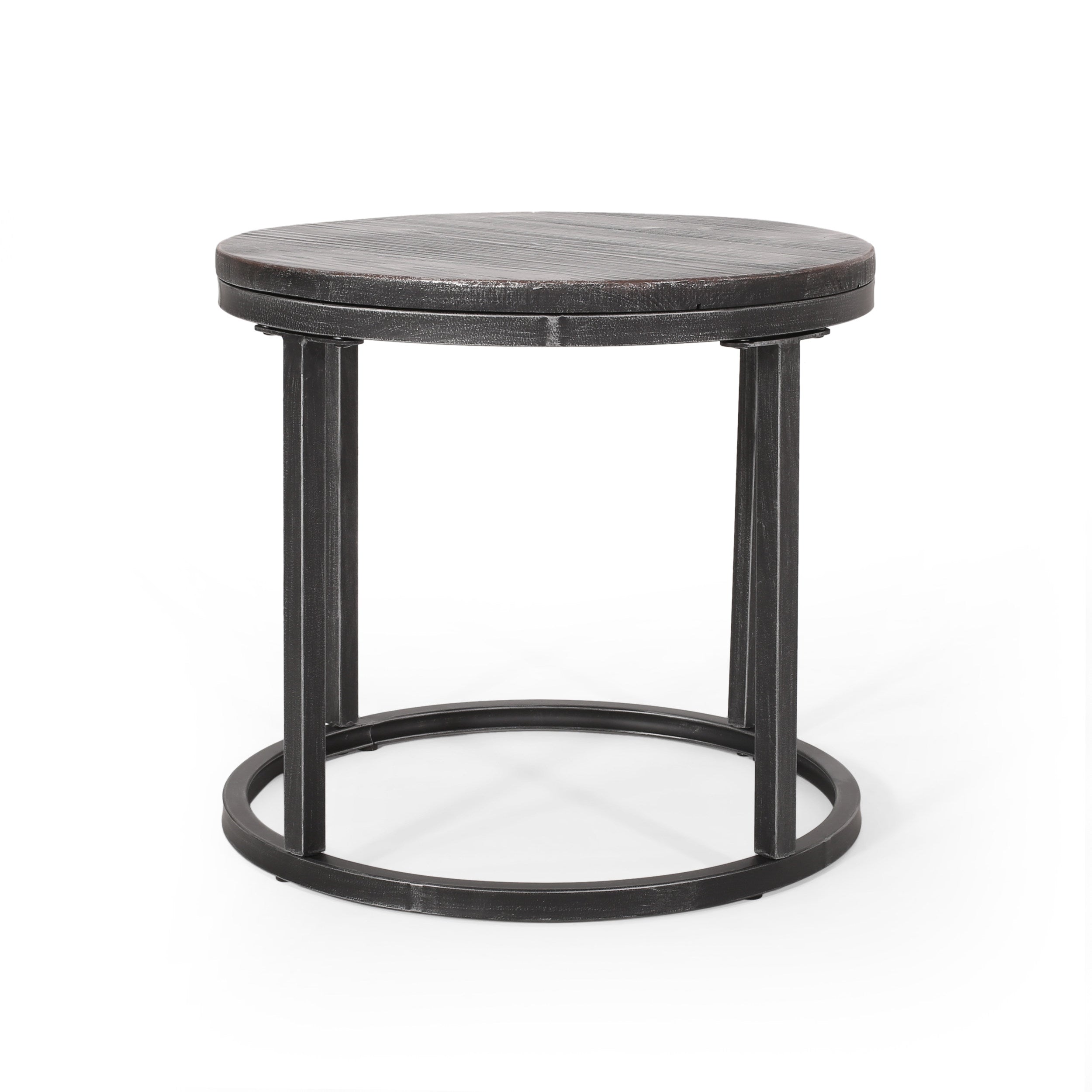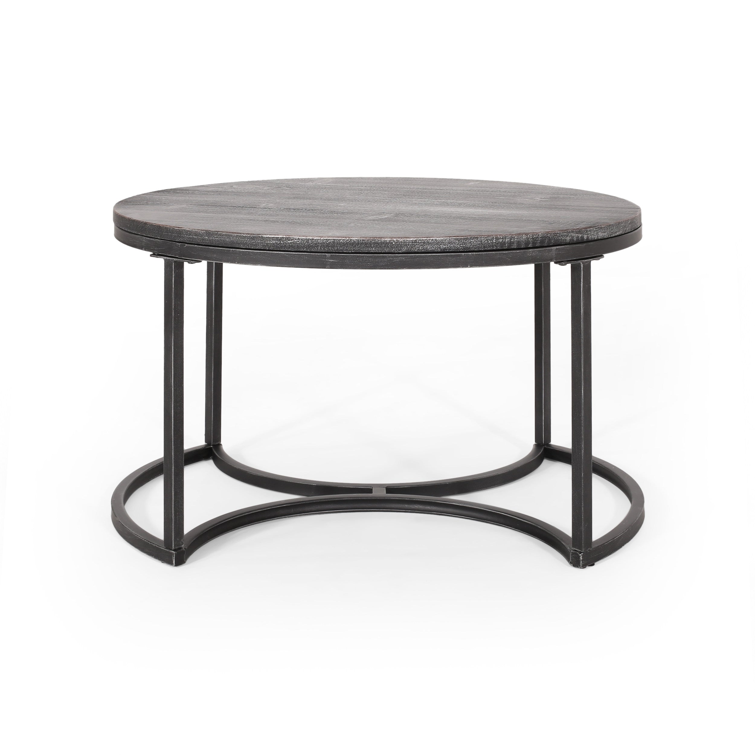 Bring modern industrial style and smart space-saving functionality to your living room with this versatile nesting coffee table set. Designed for everyday use and entertaining, the set includes one coffee table and two side tables that tuck neatly together when not in use. The combination of sturdy iron frames and wire-brushed firwood tabletops delivers a durable, textured look that complements contemporary, loft, and rustic interiors.