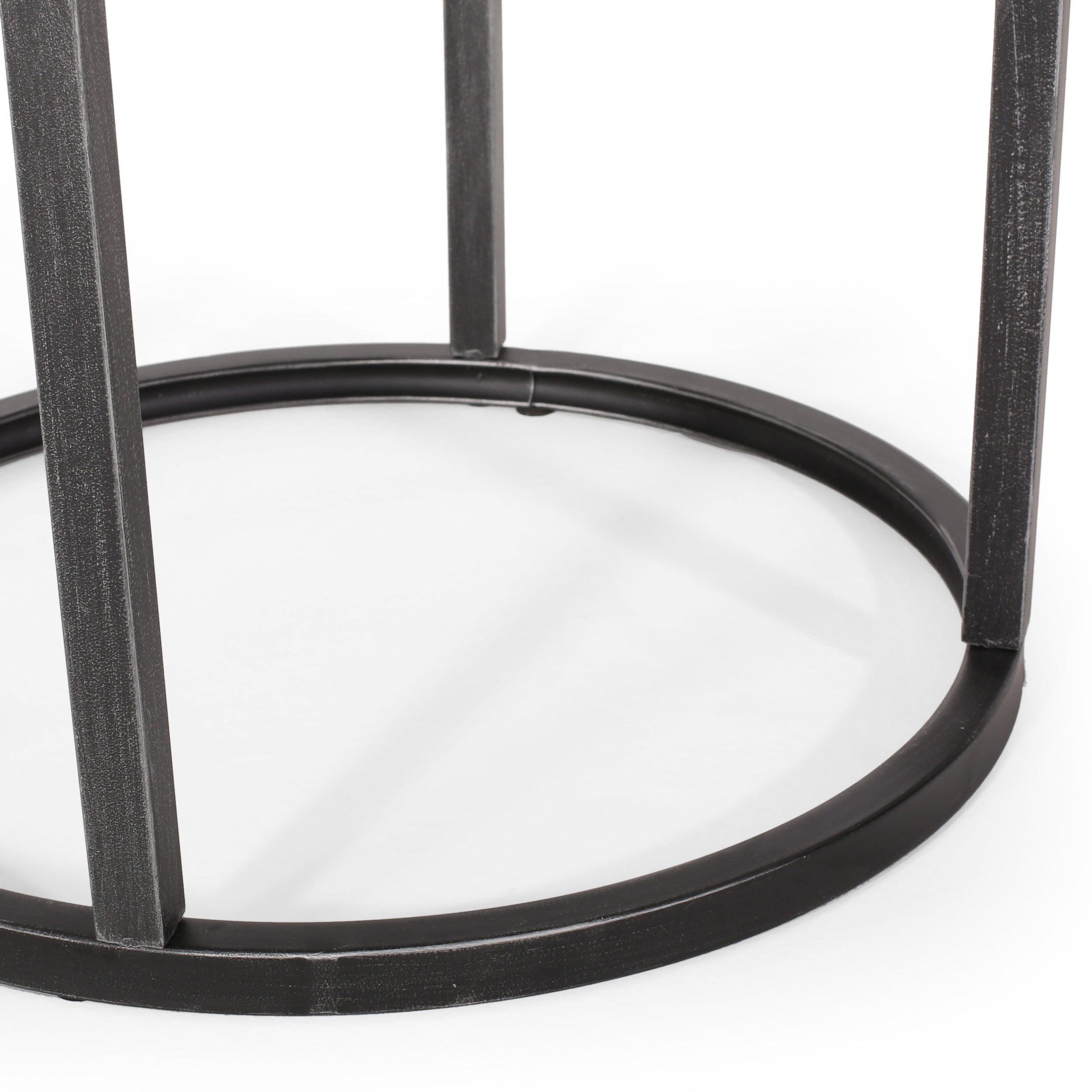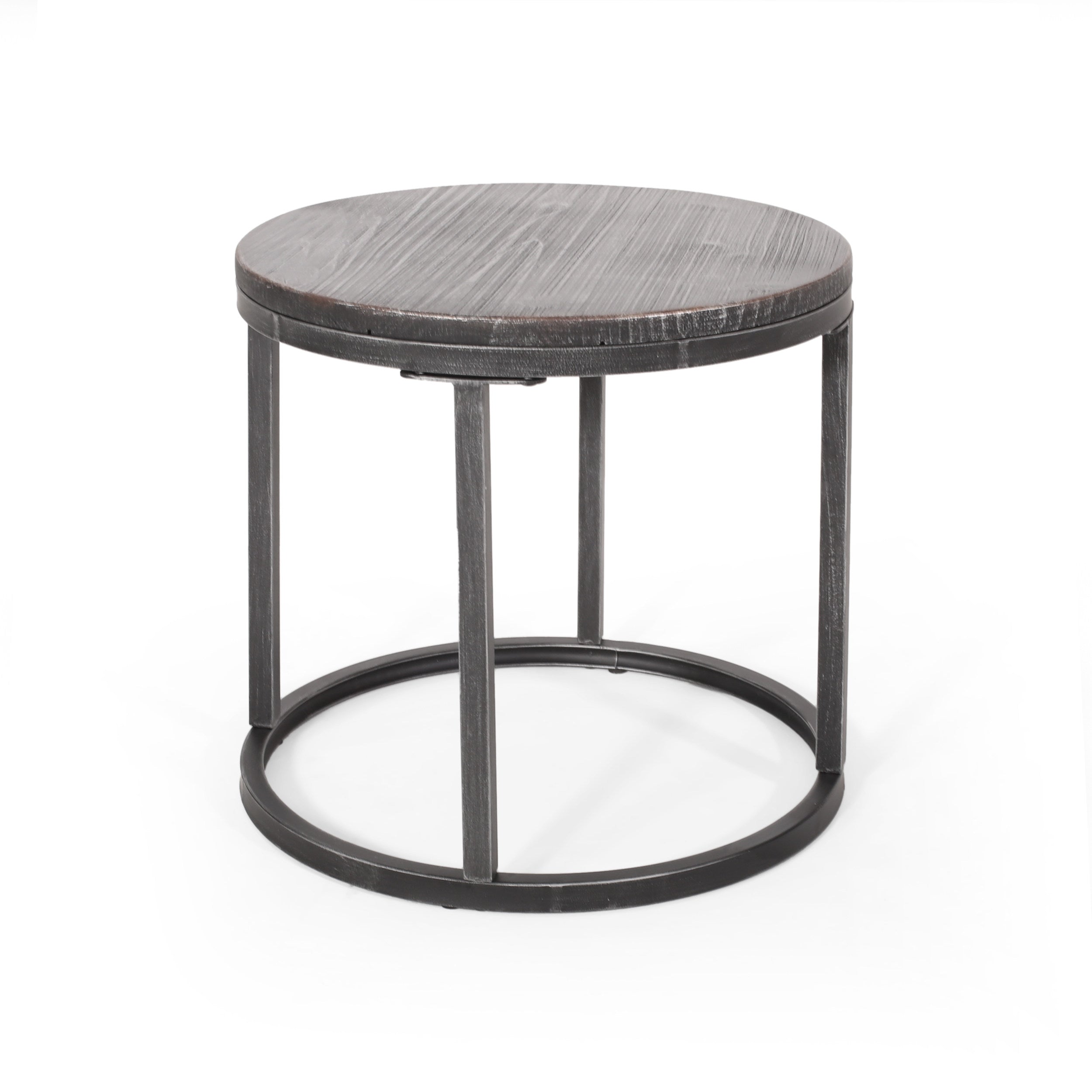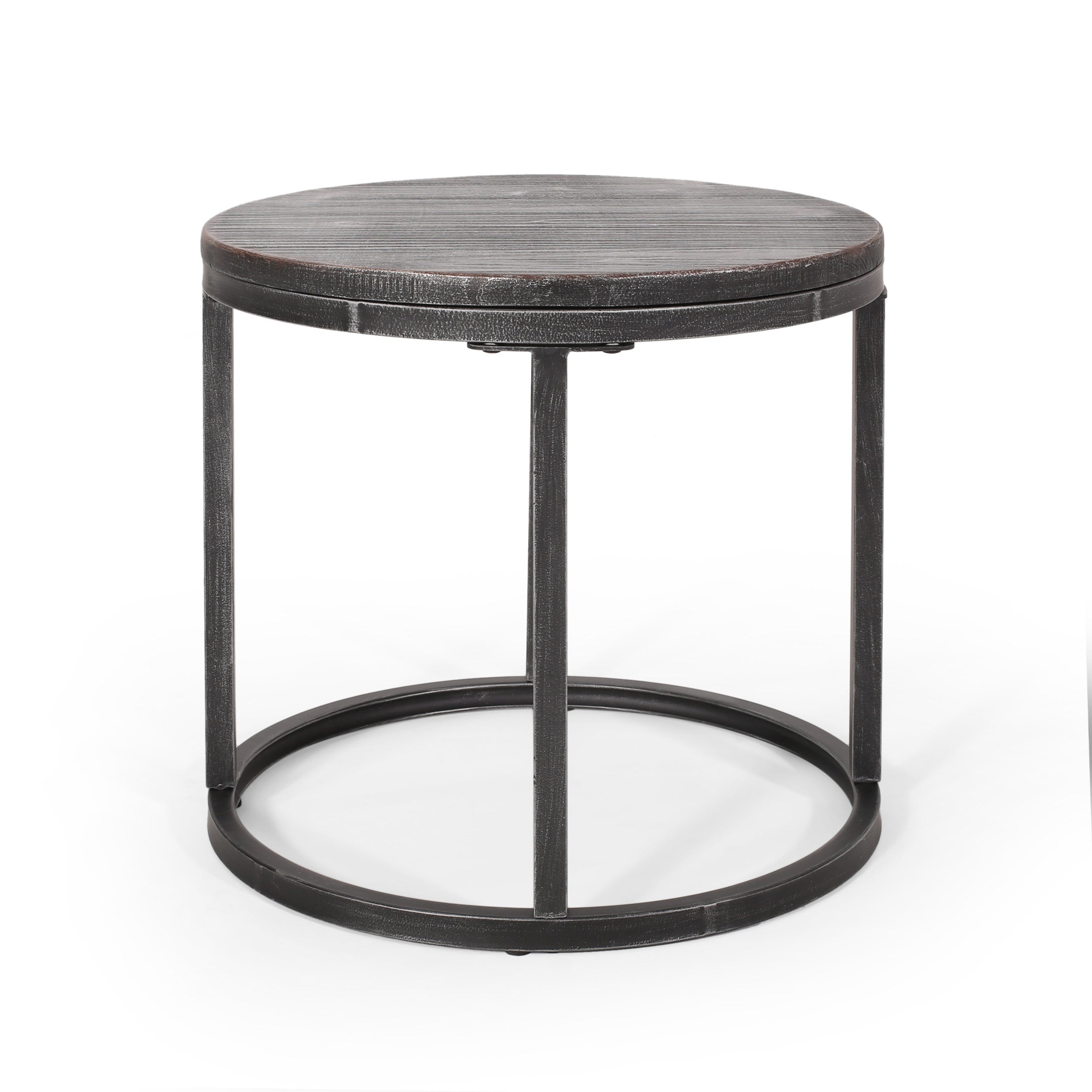 Bring modern industrial style and smart space-saving functionality to your living room with this versatile nesting coffee table set. Designed for everyday use and entertaining, the set includes one coffee table and two side tables that tuck neatly together when not in use. The combination of sturdy iron frames and wire-brushed firwood tabletops delivers a durable, textured look that complements contemporary, loft, and rustic interiors.
