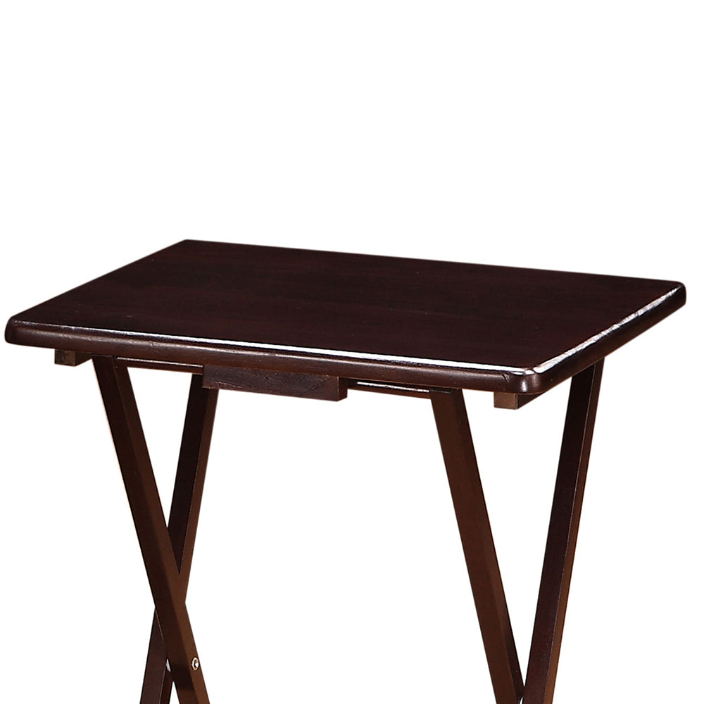 Bring form and function to everyday living with the Cranston Cappuccino 4-Piece TV Tray Table Set. Thoughtfully constructed from solid Asian hardwood and finished in a warm cappuccino tone, this set delivers a refined, casual look while providing a practical surface for dining, working, or entertaining. The included stand keeps trays neatly stored and accessible, making it an ideal addition to family rooms, dens, or small-space living areas.