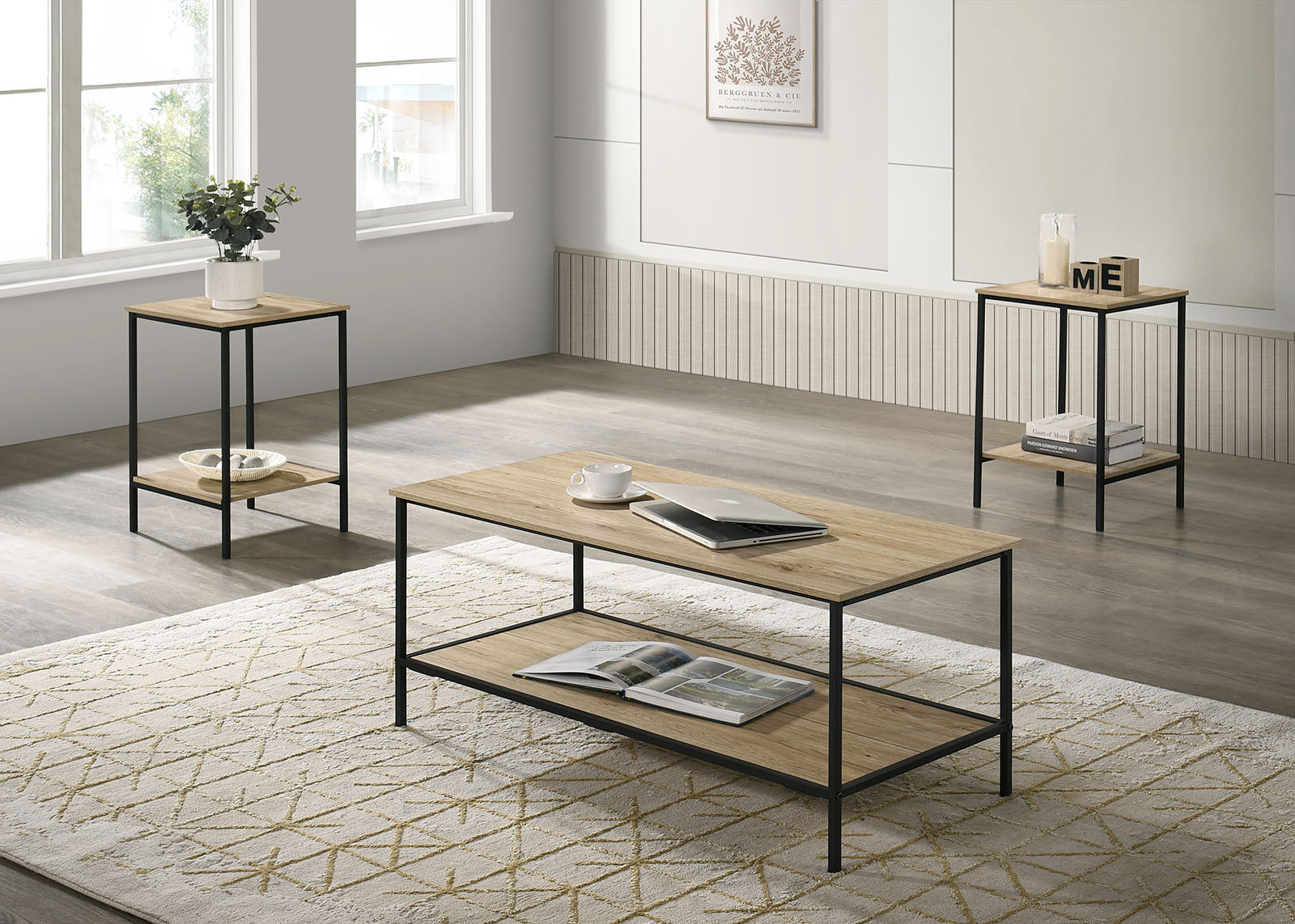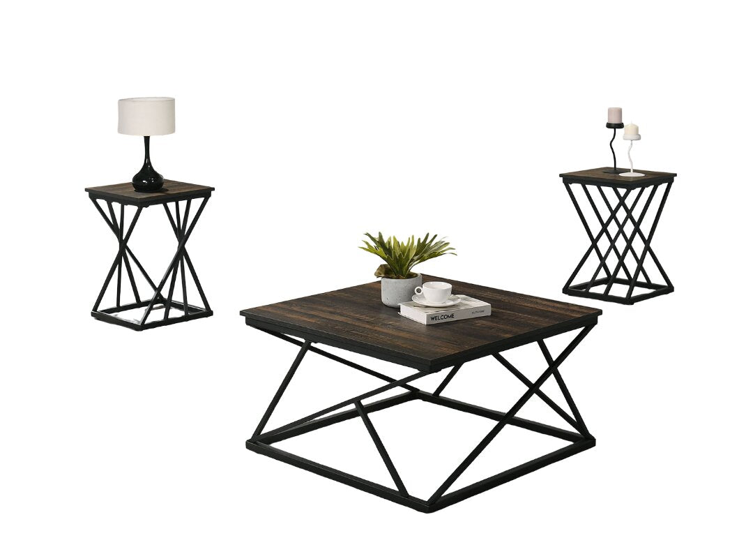 - Set includes: 1 coffee table and 2 end tables (3-piece set).