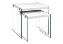 - Spacious glossy white square table tops for accessories, decorative items, etc..