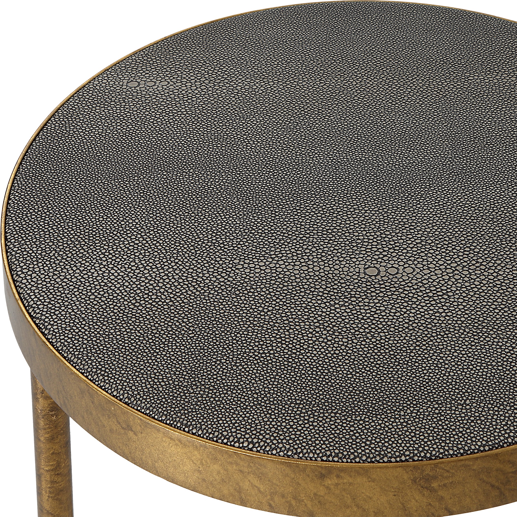 - Finish/Frame Description: This Set Of Two Functional Nesting Tables Are Constructed With Metal Bases Finished In An Antique Burnished Brass With Faux Gray Shagreen Wrapped Tops. Sizes: S- 14"x20", L-20"x24"
