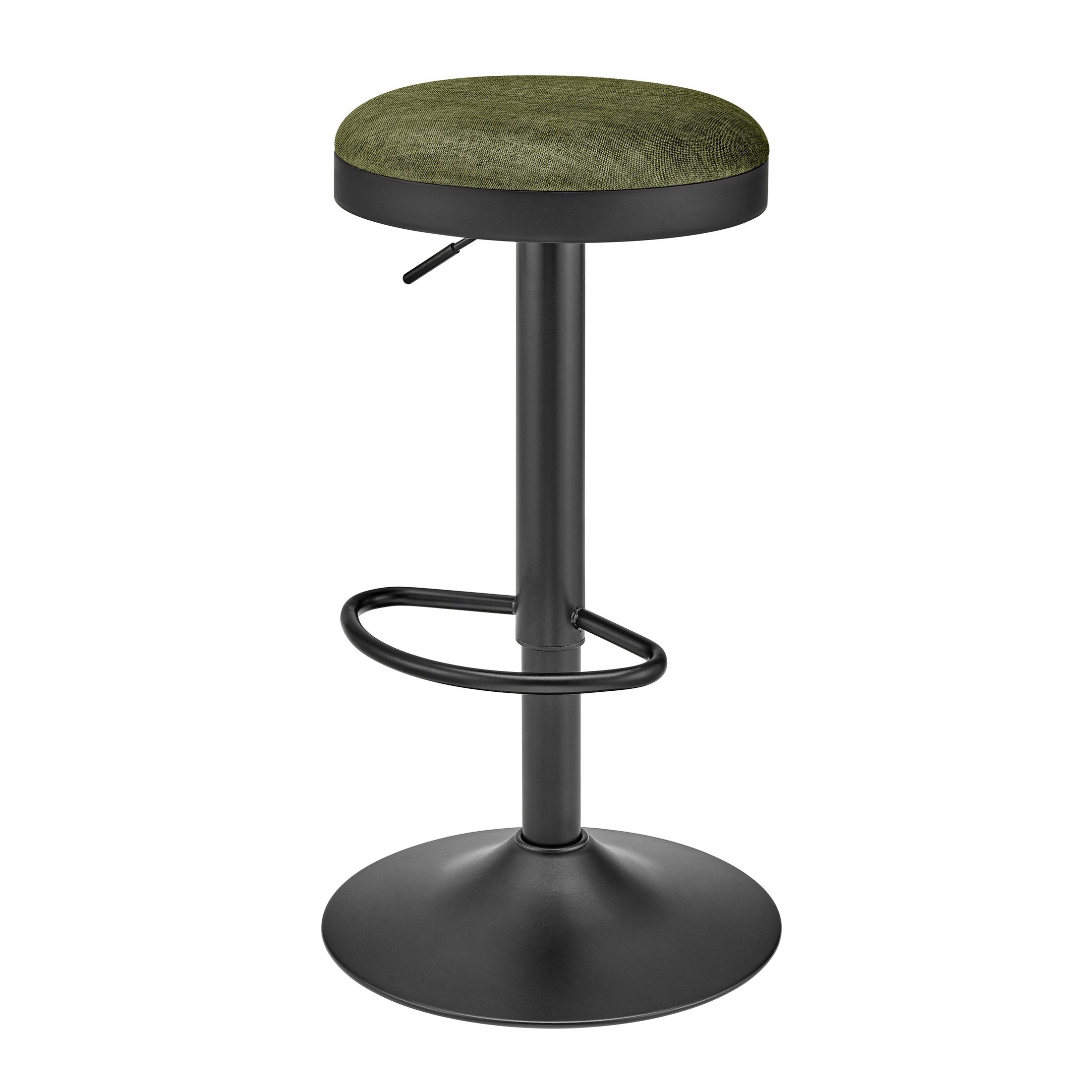 - Elevate your dining counter area with the Industrial flair bar stool, offering a 360-degree swivel and gas-lift function, all fashioned with on-trend and easy care velvet upholstery. The pedestal style base is of powder coated steel frame for durability.