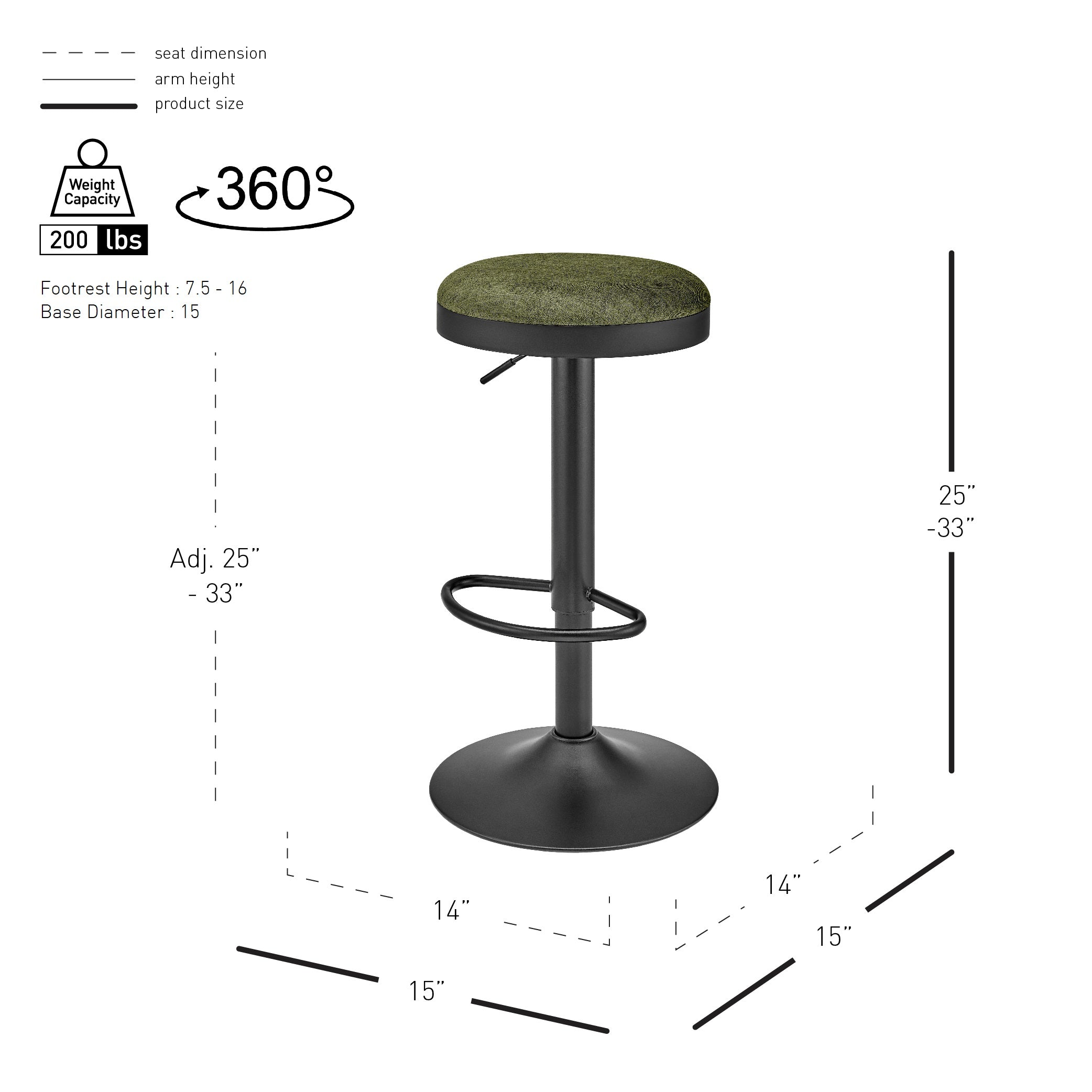 - Product measurement is taken from the highest point and widest part of the item. Dimensions : 15"w 15"d 33"h. Seat Height : Adj. 25 - 33. Seat Dimensions : 14 x 14. Maximum bearing weight : 200 lbs.