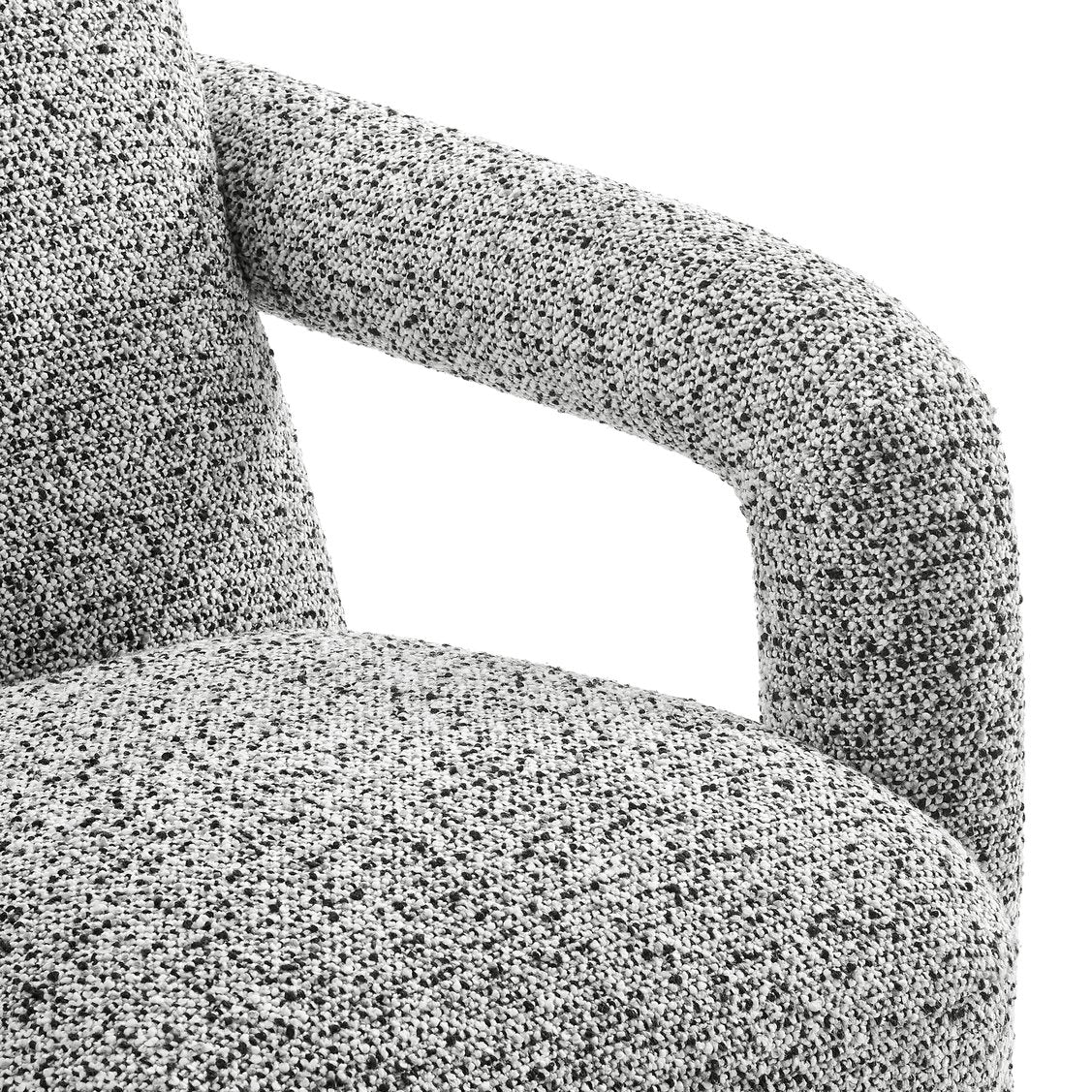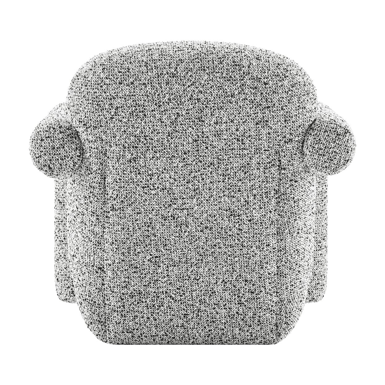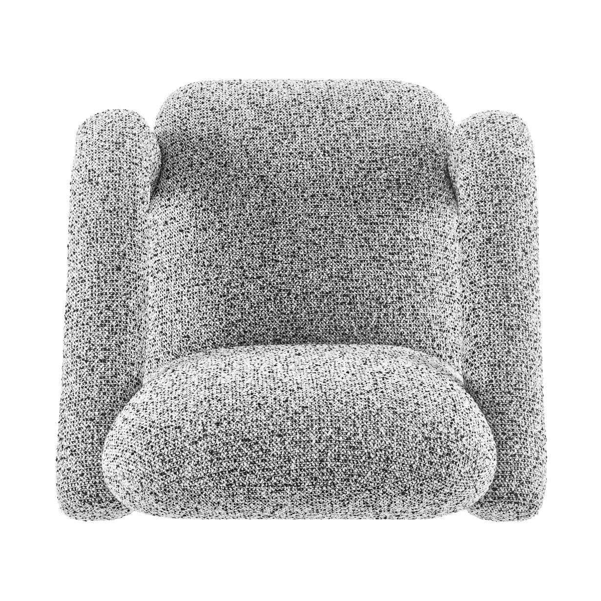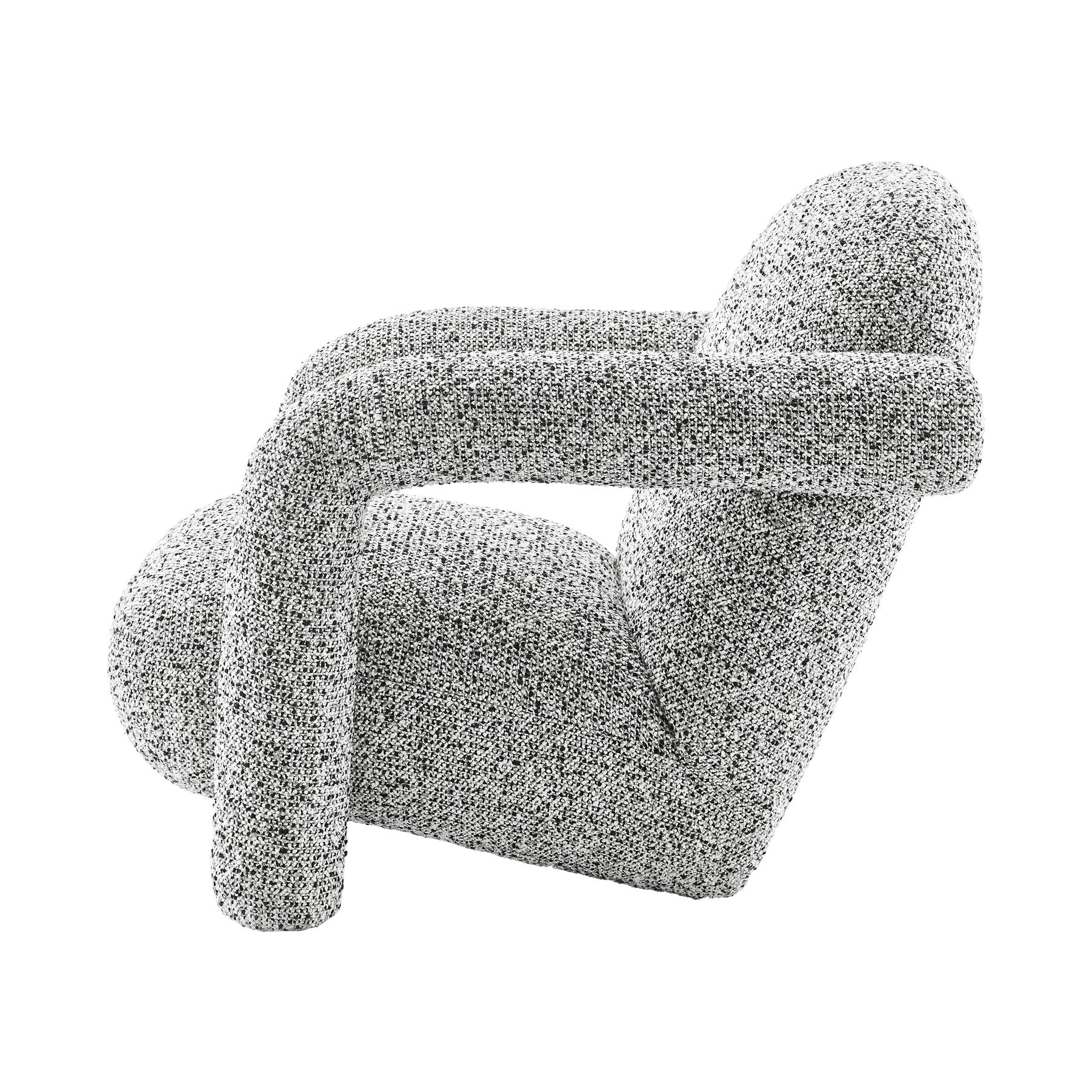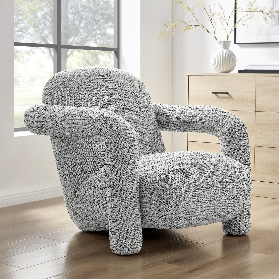- Low-to-the-ground accent piece redefines sculptural design with a contemporary flair. Upholstered in boucle fabric with a whimsical texture, it features a rounded backrest and generously cushioned seat with high-density foam for superior comfort. The tubular arm frames is a playful touch that will make a statement in your living room. Plastic glides are included for floor protection.