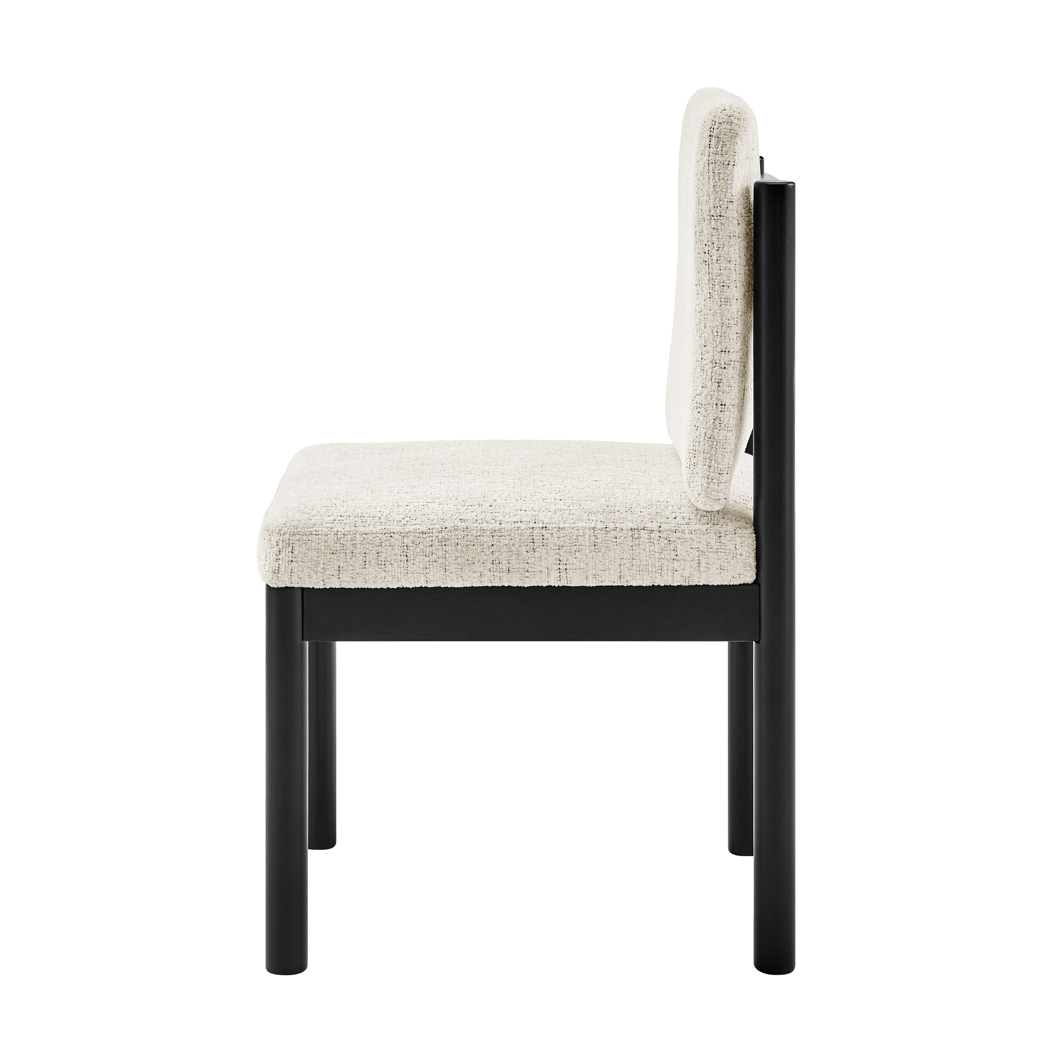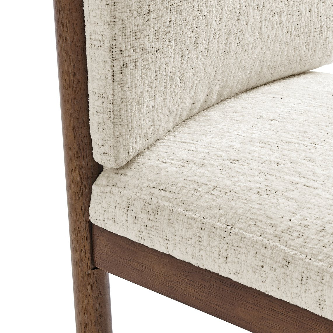 - Instantly elevate your space with a Japandi Modern vibe by incorporating the Melvin series into your dining or living room. Featuring a soft woven polyester upholstery and solid wood legs, this collection offers durability and easy maintenance for daily use. It also includes plastic glides for added safety and stability.