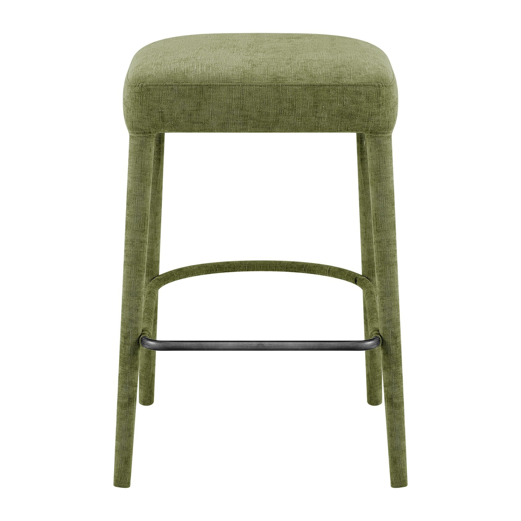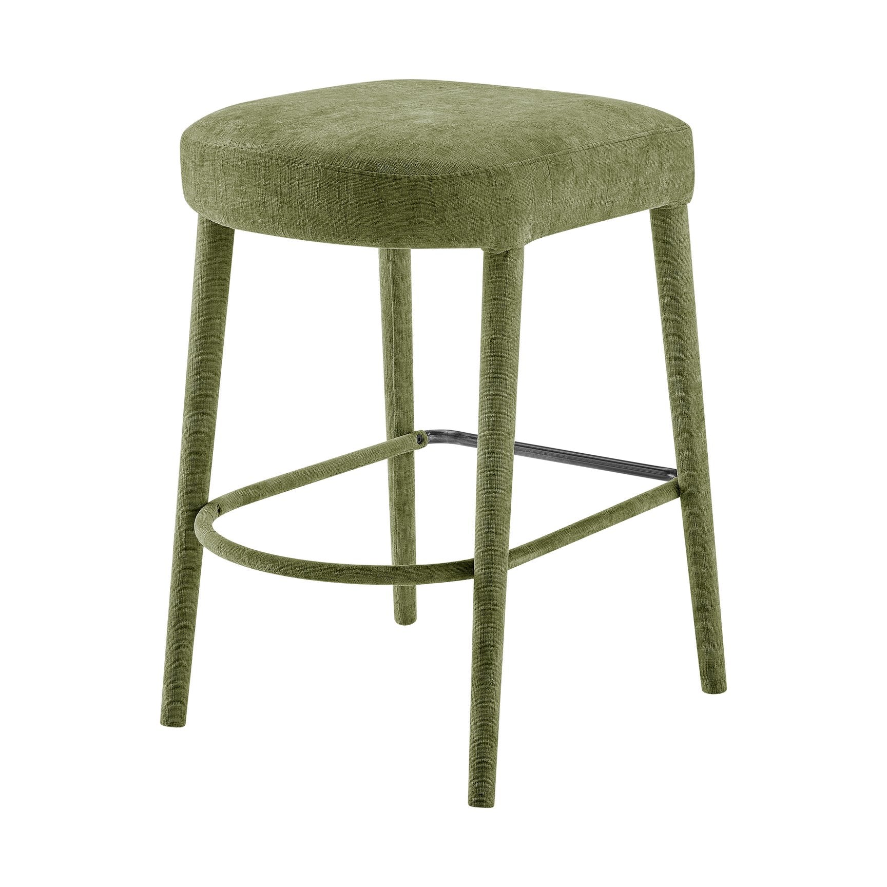 - Ideal for a Modern Breakfast Bar, this stylish counter stool features a posh chenille fabric seat, with matching fully covered fabric legs for a seamless look. It has a steel plate and footrest for ergonomic comfort while plastic glides are included to protect the floors.