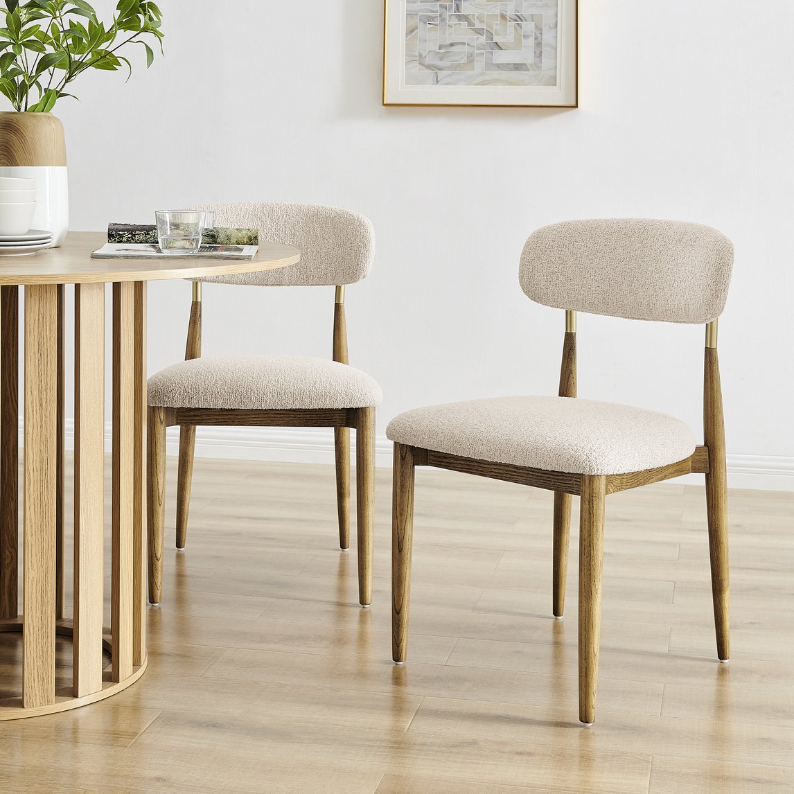 - Well constructed of Boucle Fabric, Engineered Wood, Solid Nettle Wood, Powder Coated Steel. Leg Color : Nettlewood.