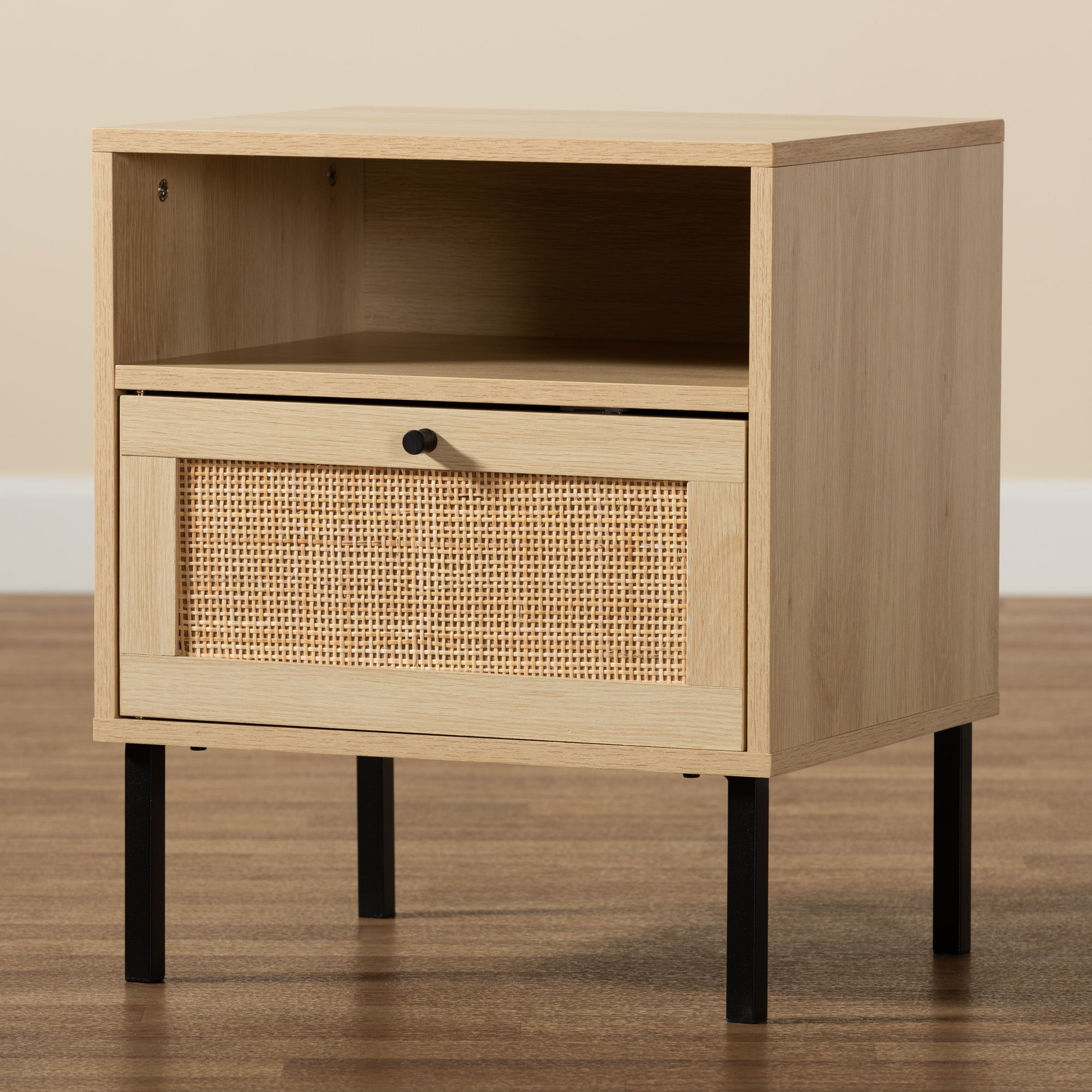 - FEATURE 1: Modern bohemian nightstand