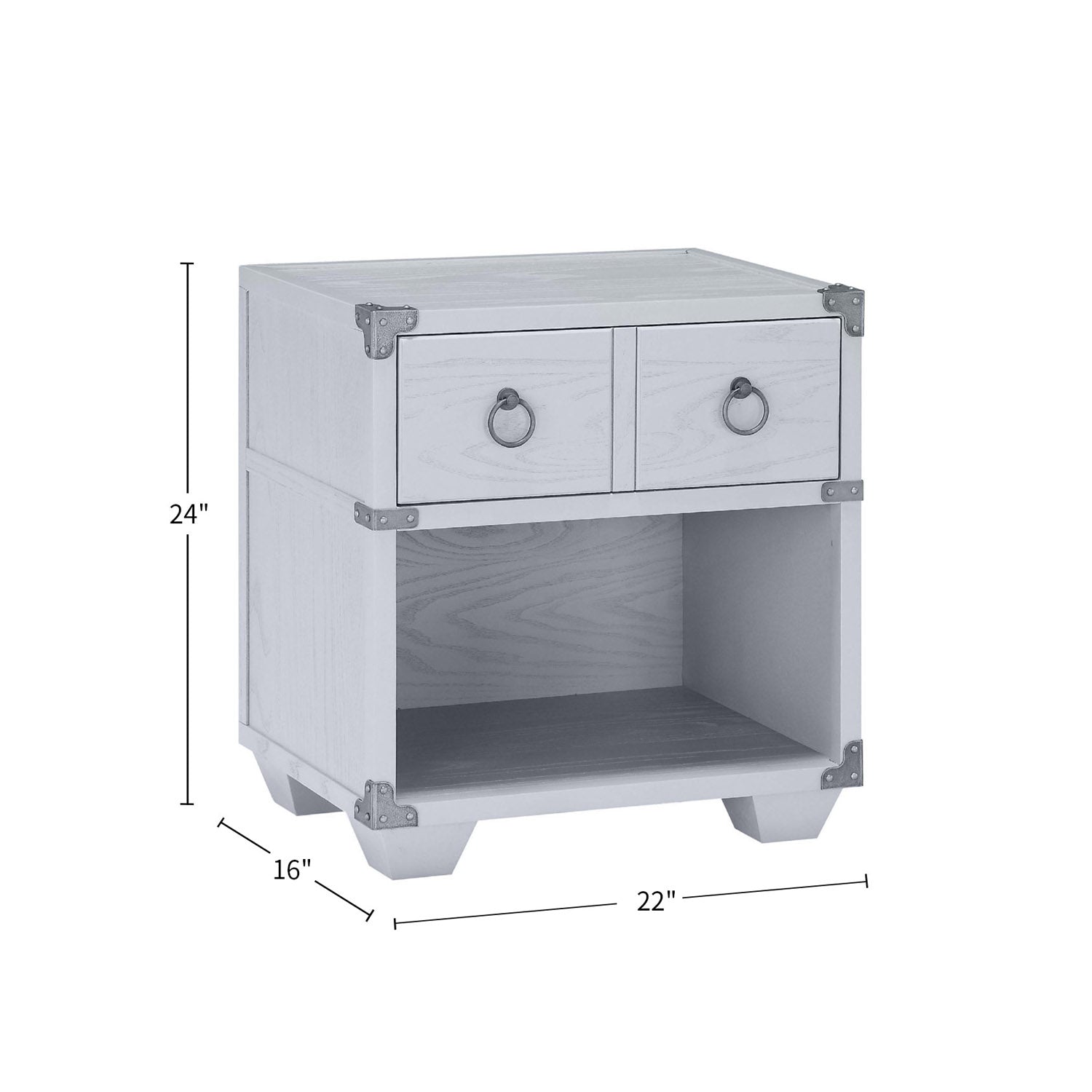 - Storage layout: One smooth-glide drawer for concealed storage and one open compartment for books, a clock, or display items.