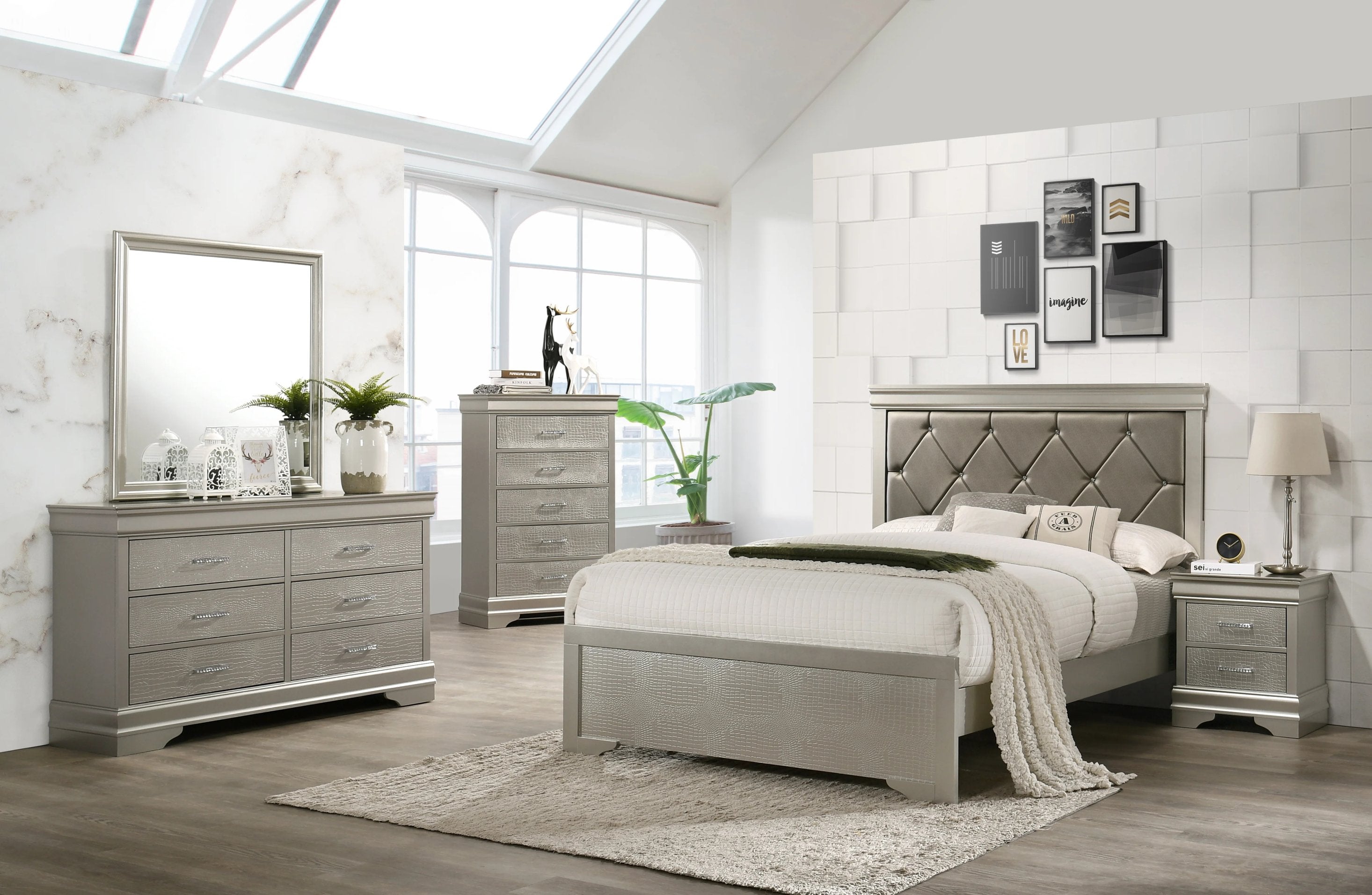 - Design: Modern glam styling with champagne finish, crystal-like diamond tufting, and crocodile-texture accents for a luxurious look