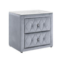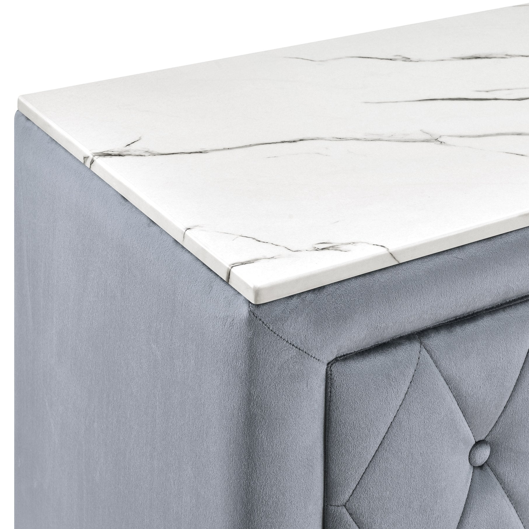 Elevate your bedroom with a blend of modern glamour and practical storage. This upholstered nightstand features a plush, diamond-tufted exterior and a faux marble top that creates an upscale focal point while providing a functional surface for a lamp or decor. Crystal-look drawer knobs and clean wooden construction deliver a refined, cohesive look that complements contemporary and transitional interiors.