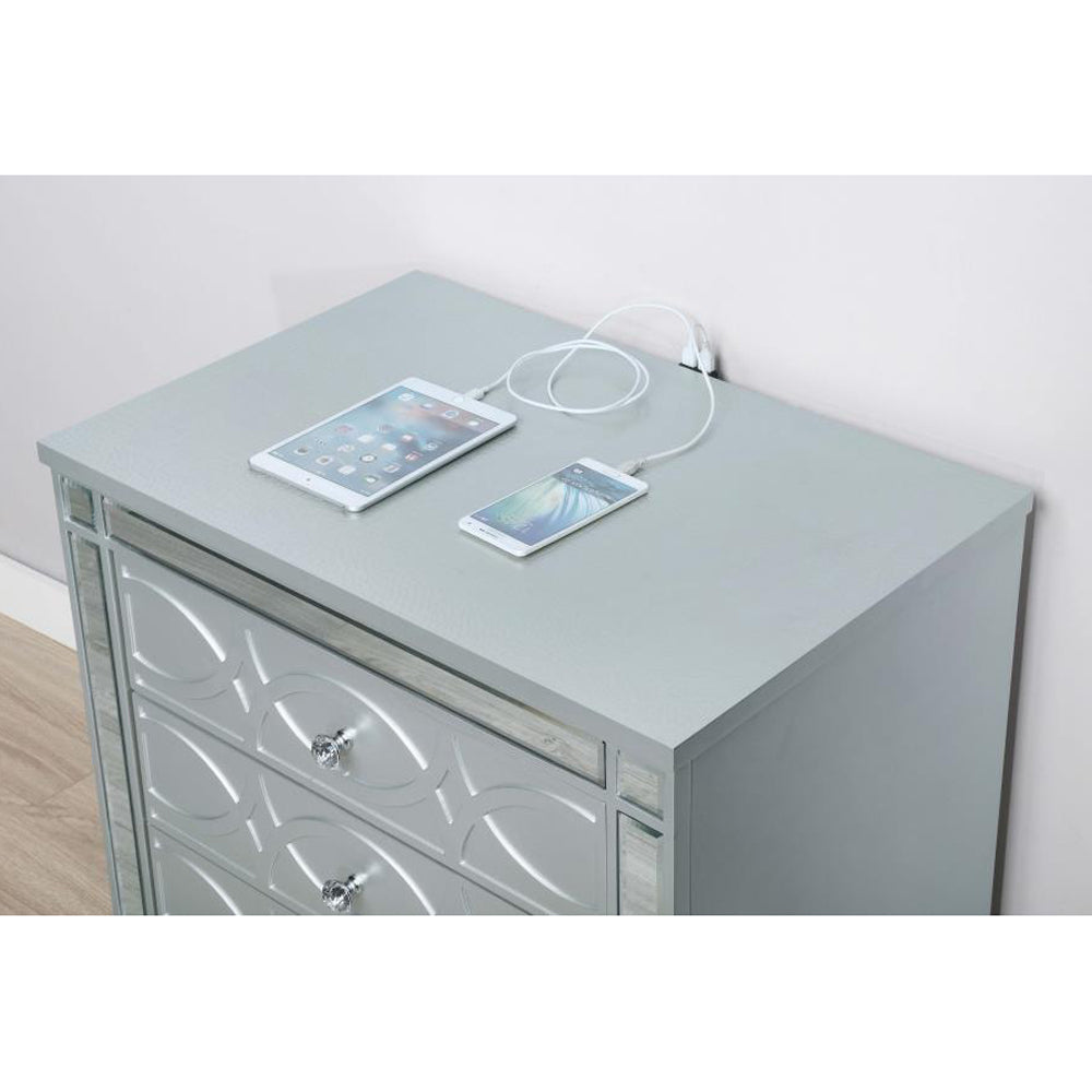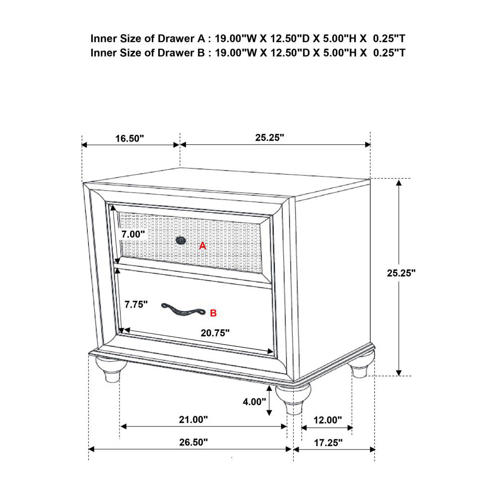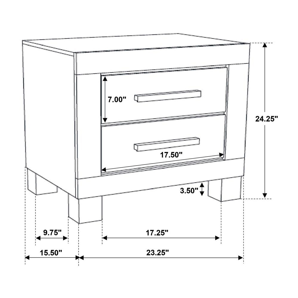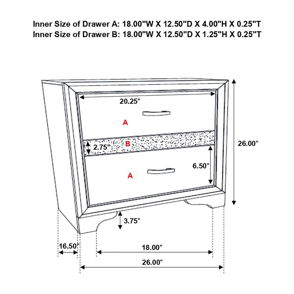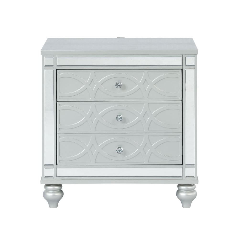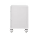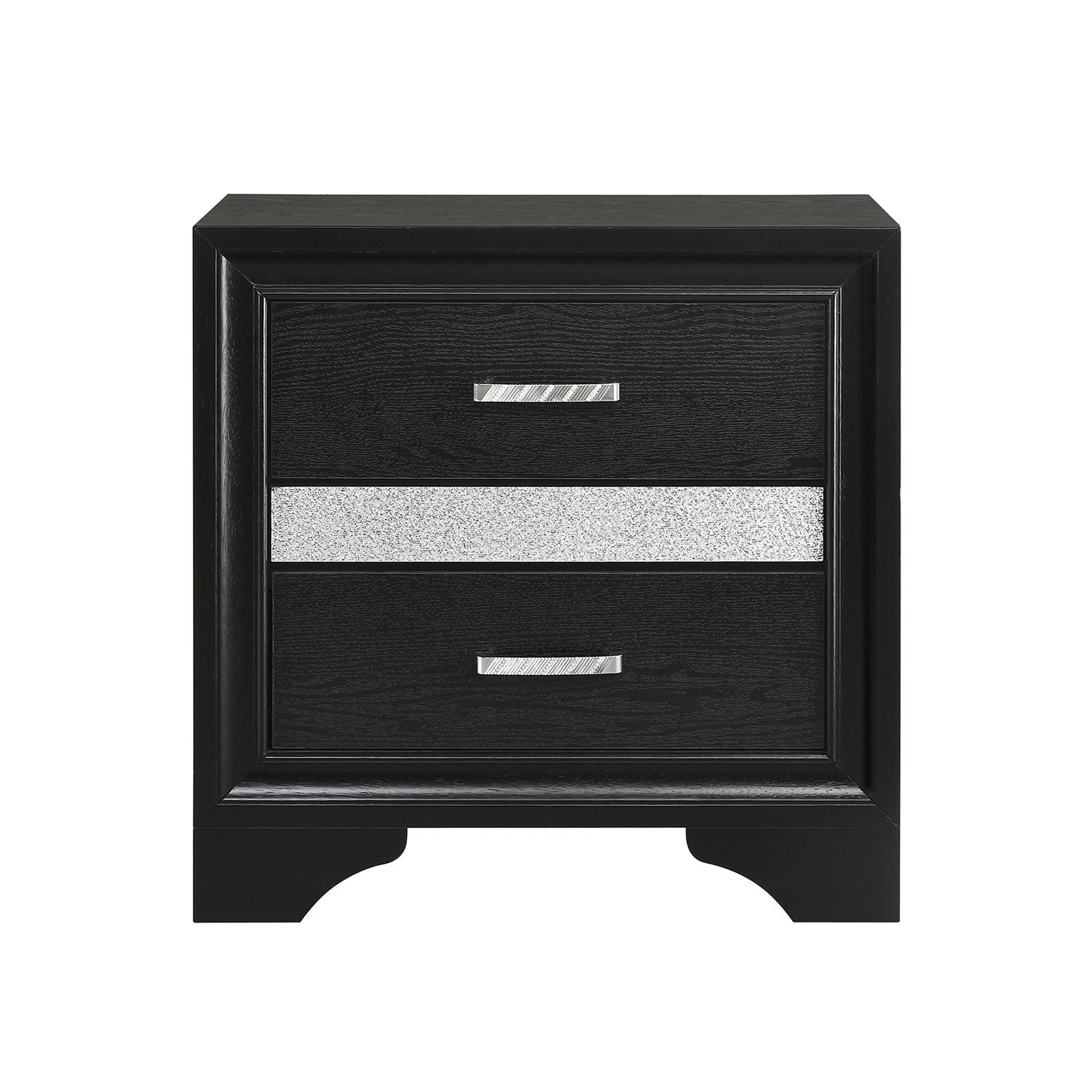 Add a touch of modern glamour to your bedroom with this elegant two-drawer nightstand. Clean white finishes, faceted crystal drawer pulls, and glitter-acrylic panels combine for a chic, upscale look while providing practical bedside storage for a tidy, organized space.
