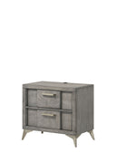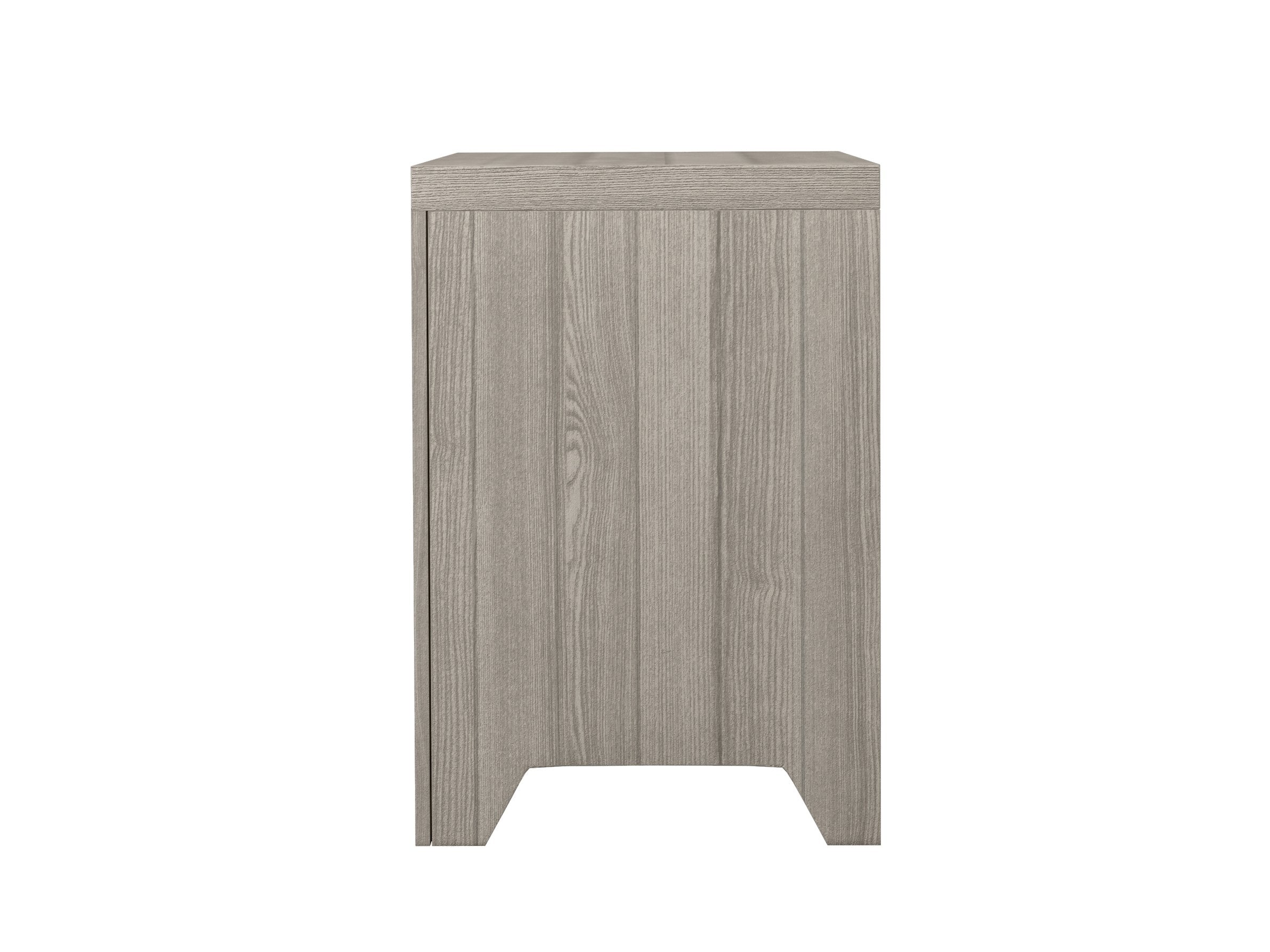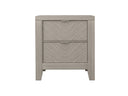 Add modern warmth and practical storage to your bedroom with this elegant two-drawer nightstand finished in gray bookmatched ash veneers. Crafted from solid wood and MDF, it combines refined veneer patterning with durable construction and thoughtful features like built-in USB charging to keep essentials within reach.