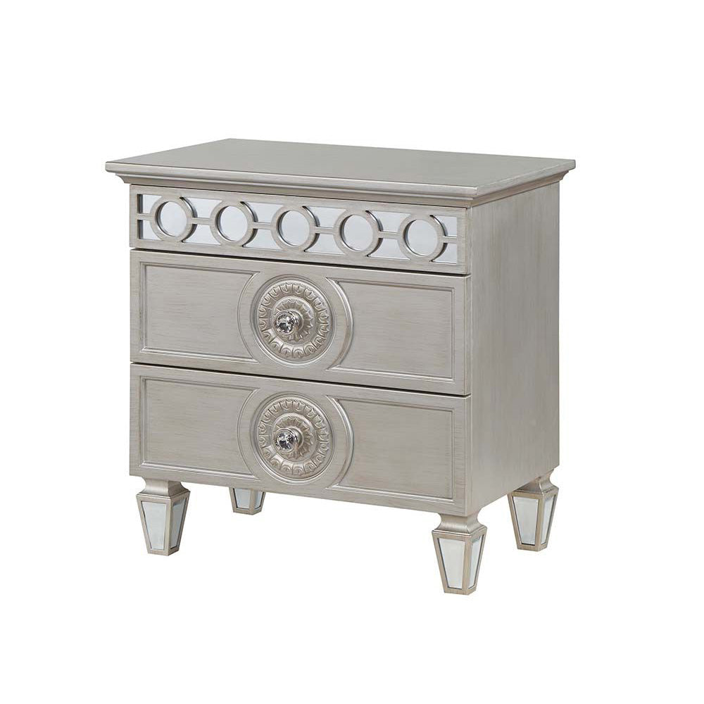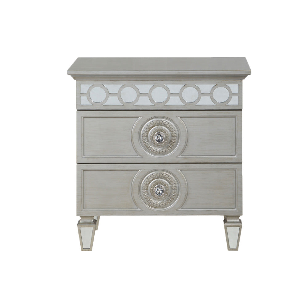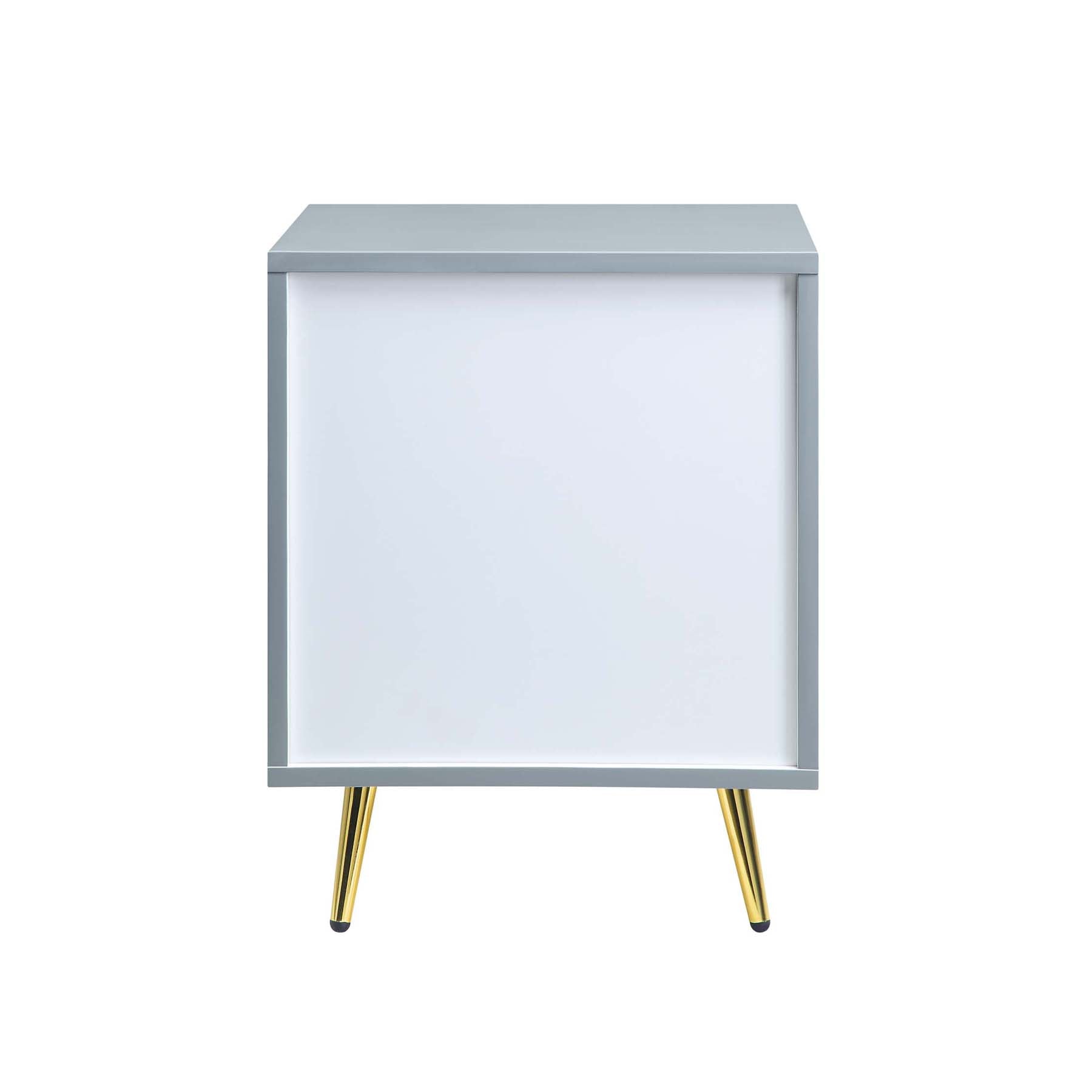 Add a touch of modern glamour to your bedroom with this sleek two-drawer nightstand. Its high-gloss gray finish and gold metal accents create a refined, contemporary look while offering practical bedside storage. Designed to blend with a variety of decor styles, this piece keeps essentials organized and within reach.