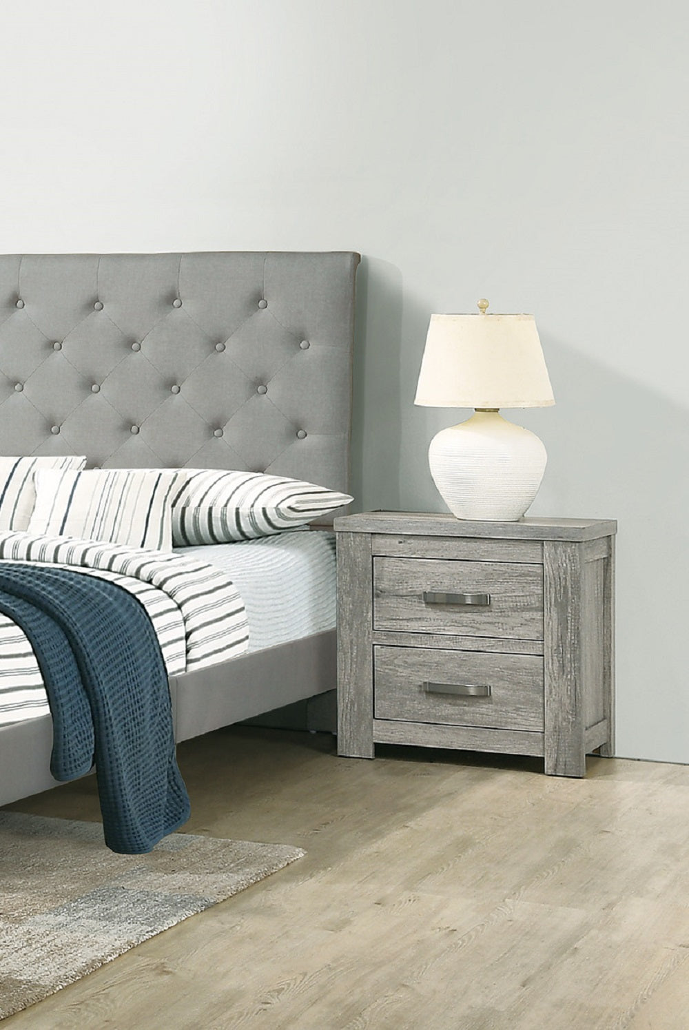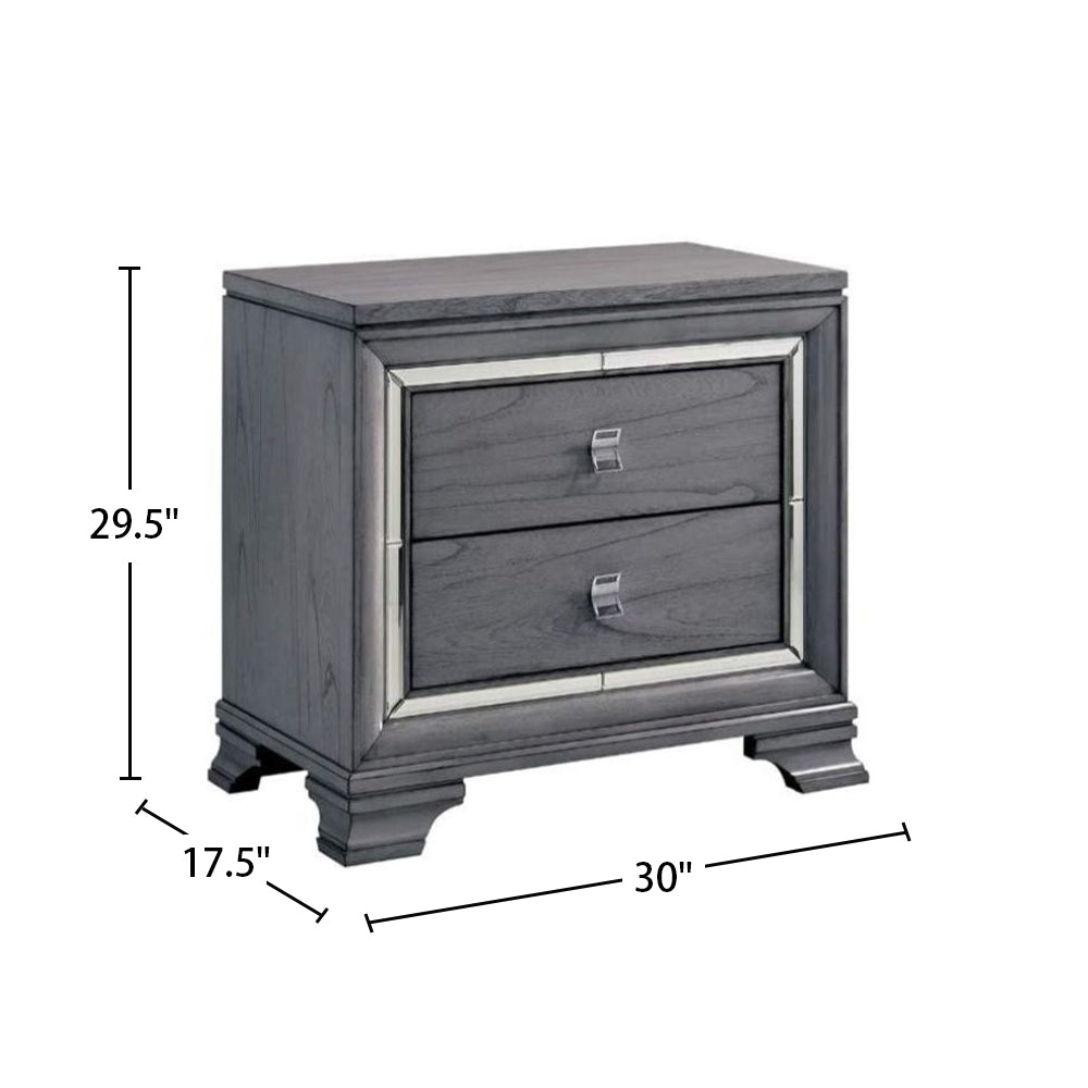 Bring modern functionality and understated elegance to your bedroom with this two-drawer wooden nightstand. Its clean grey finish and refined details offer a contemporary centerpiece that balances storage capacity with a compact footprint — ideal for organizing bedside essentials while keeping surfaces tidy and styled.