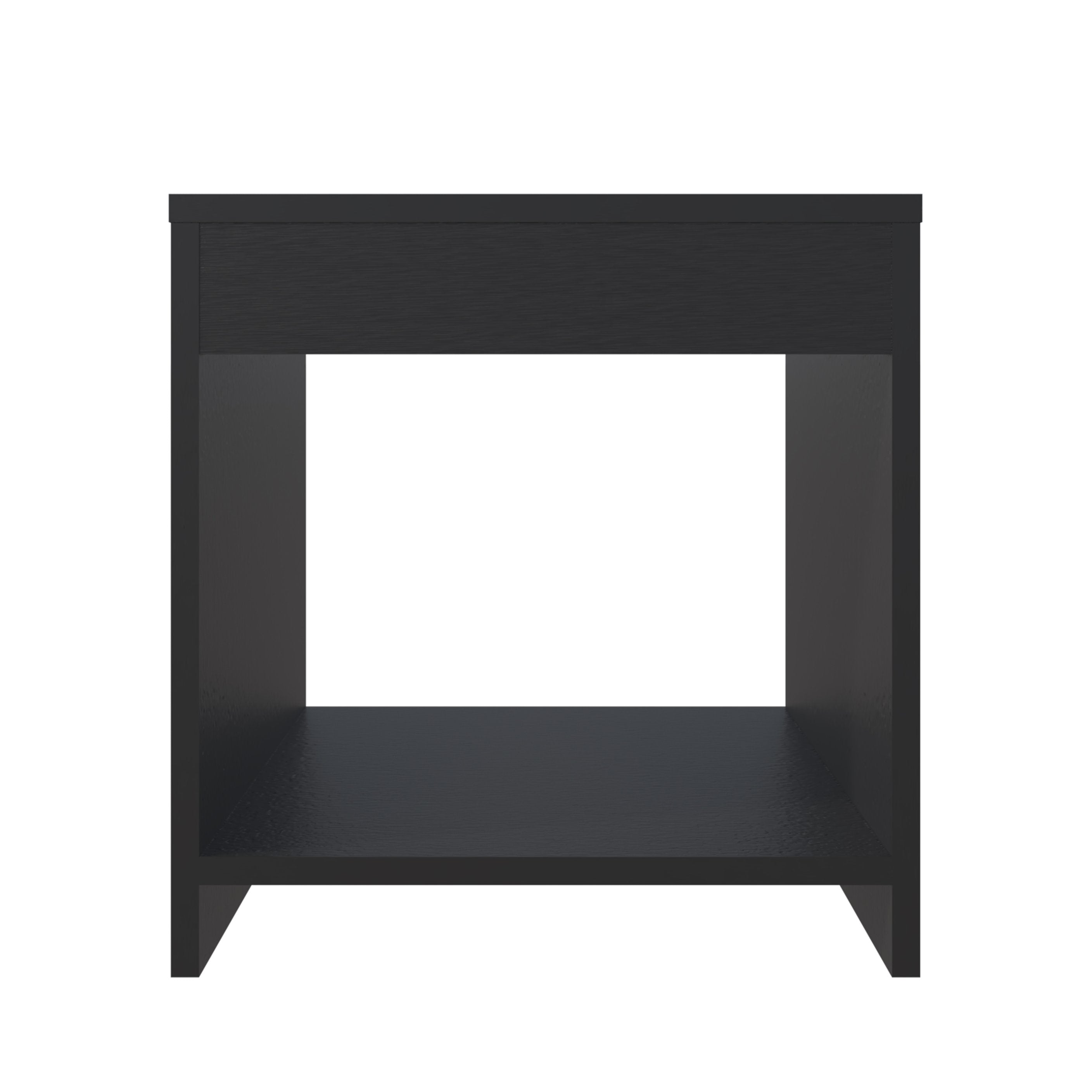 Bring clean lines and practical storage to your bedroom with this modern black nightstand. Its minimalist silhouette and open lower shelf keep essentials within reach while maintaining a light, airy feel—perfect for contemporary, small-space, or minimalist interiors.