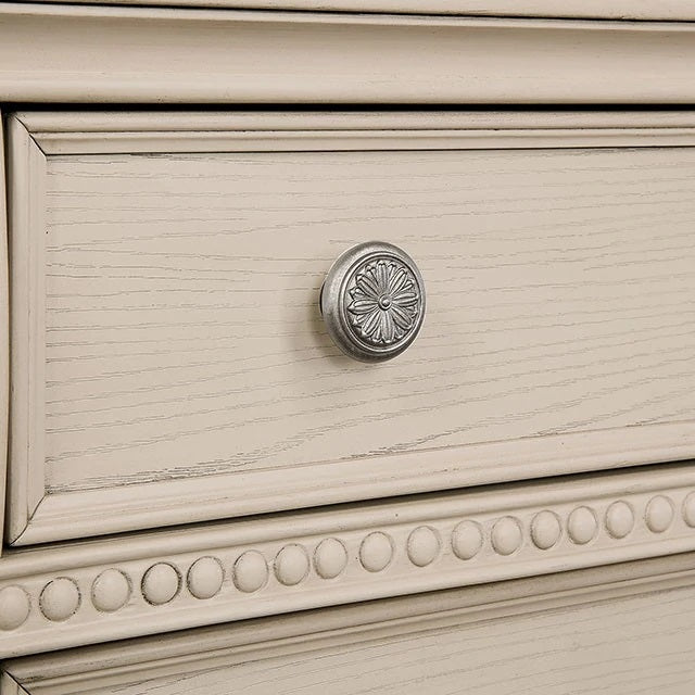 Transform your bedroom into a refined retreat with this antique-white nightstand. Crafted with classic design cues and tasteful hardware, it pairs ornate detailing with functional storage to elevate both traditional and transitional interiors. Durable construction and a timeless finish ensure this piece remains a focal point night after night.