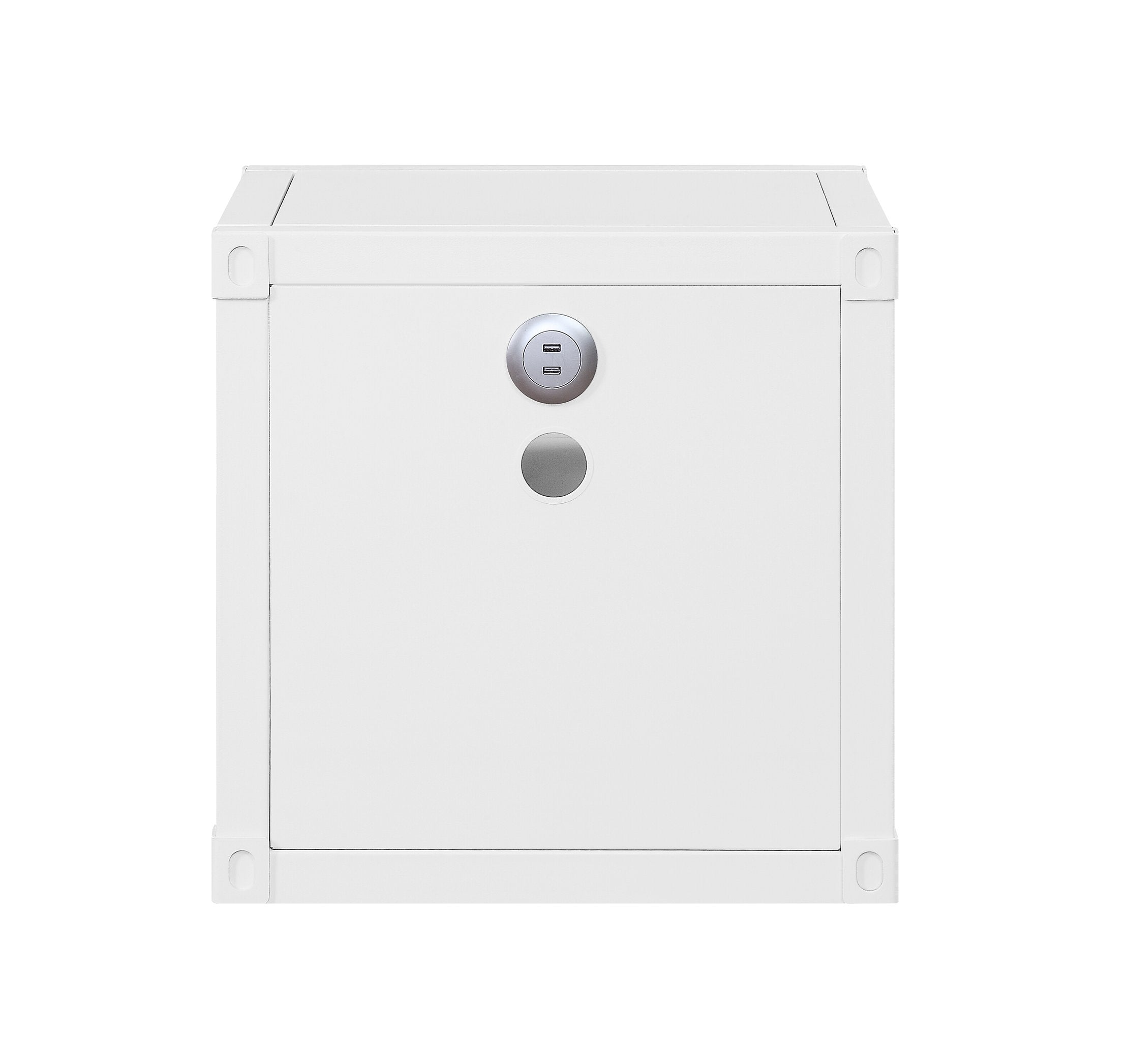 Upgrade your bedside with a compact, industrial-inspired nightstand that combines sturdy metal construction with practical storage and modern charging convenience. Its clean white finish and cargo-style panels deliver a contemporary look while the legless profile fits snugly against walls or under low furniture.