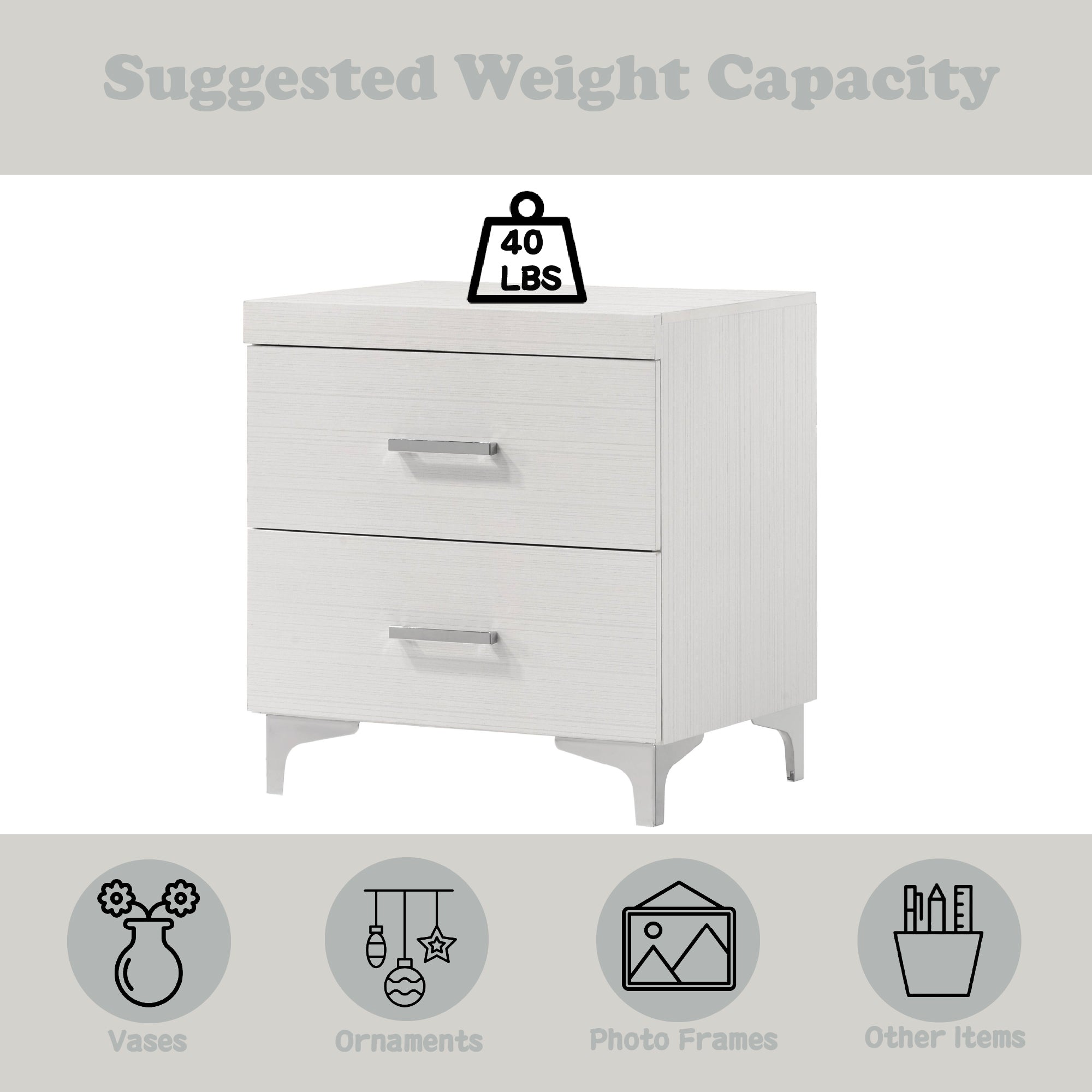 - Finish: Clean white finish that complements a variety of bedroom styles from modern to cottage
