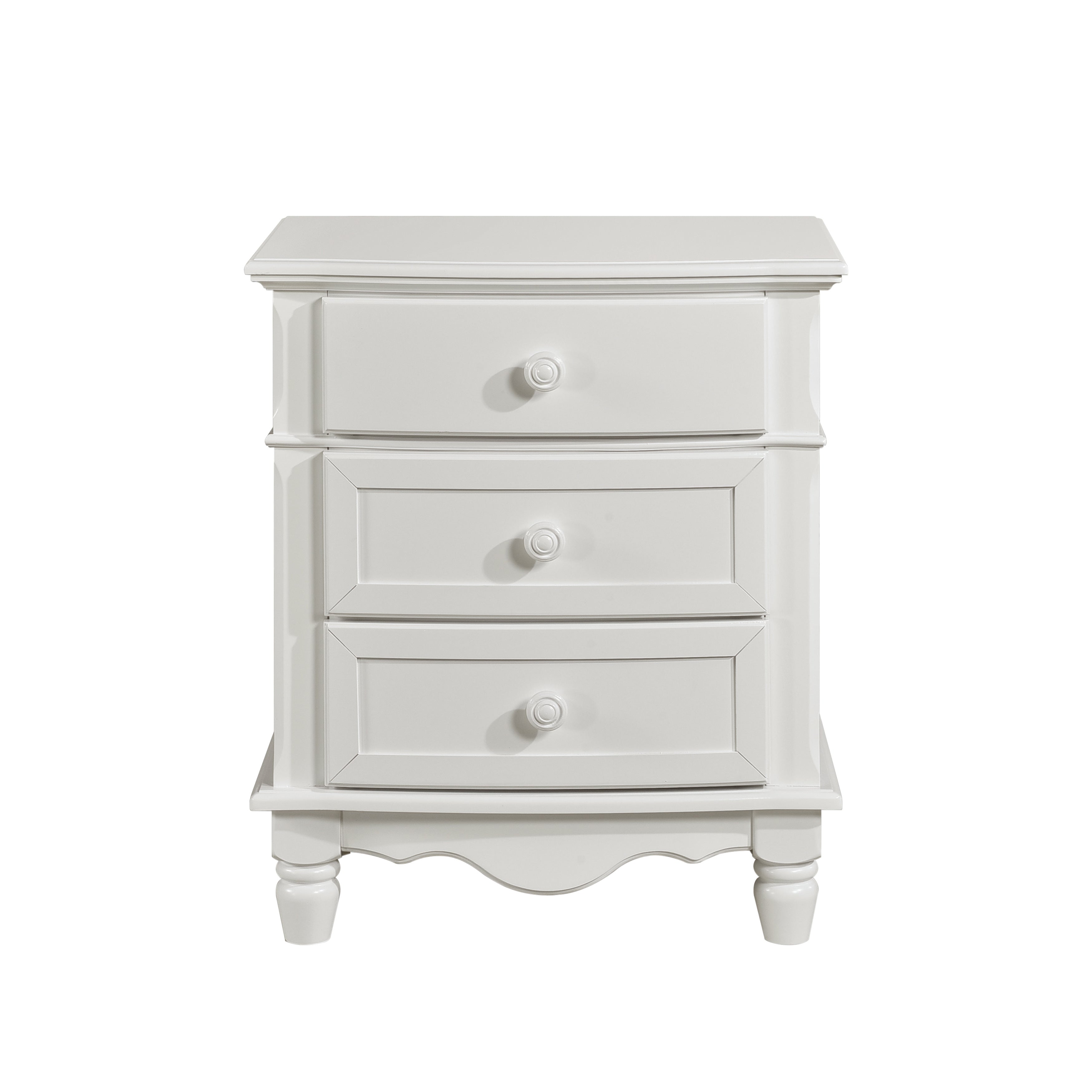Brighten your child’s bedroom with a timeless nightstand that pairs classic styling and kid-friendly scale. This Clementine nightstand features a bow-front silhouette, turned feet, framed bead-board paneling, and wooden knob hardware—details that create a charming, cottage-inspired look while providing practical bedside storage.