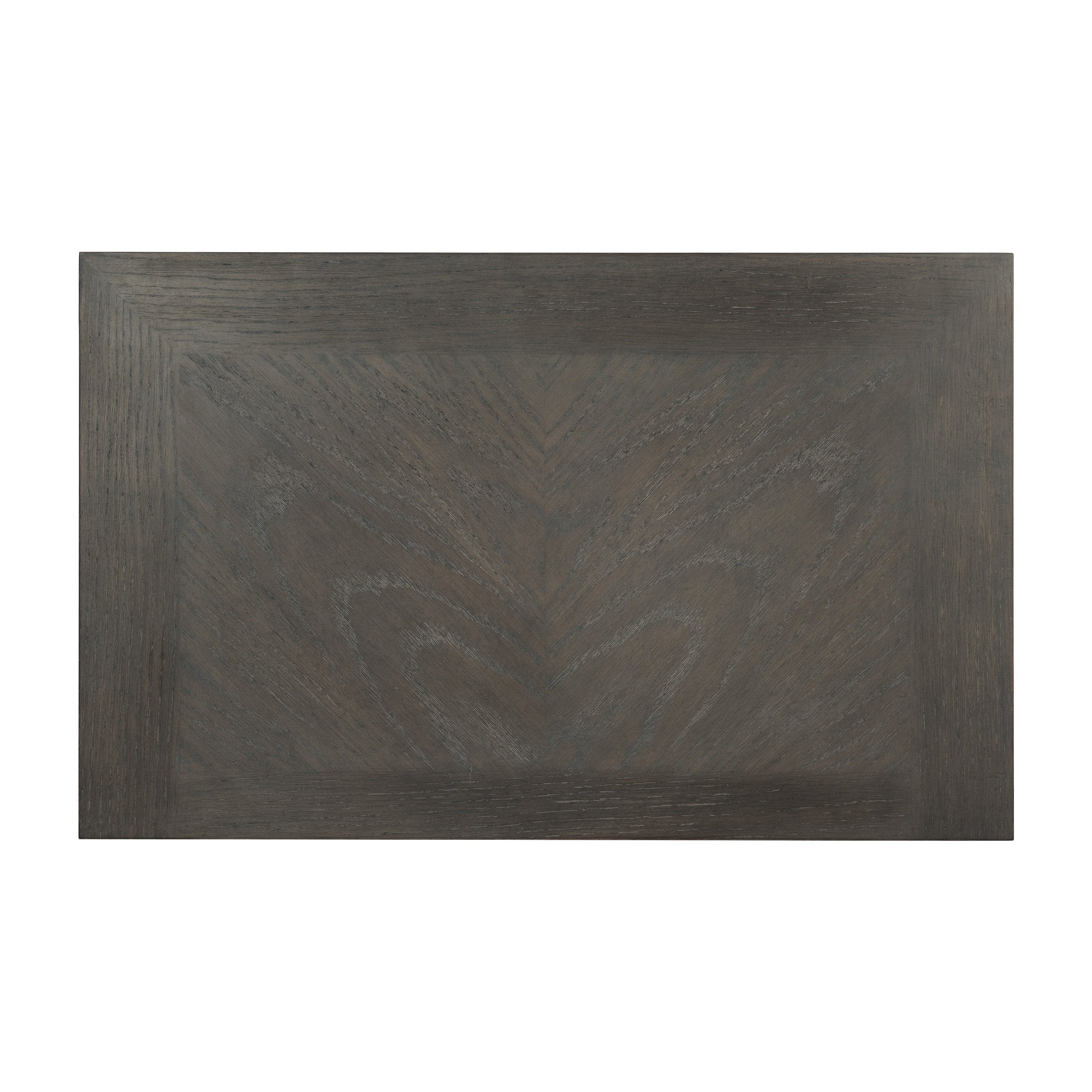 - Materials & Finish: Constructed from pine solids with oak veneer; finished in a light gray that highlights wood grain, with a contrasting dark brown top.