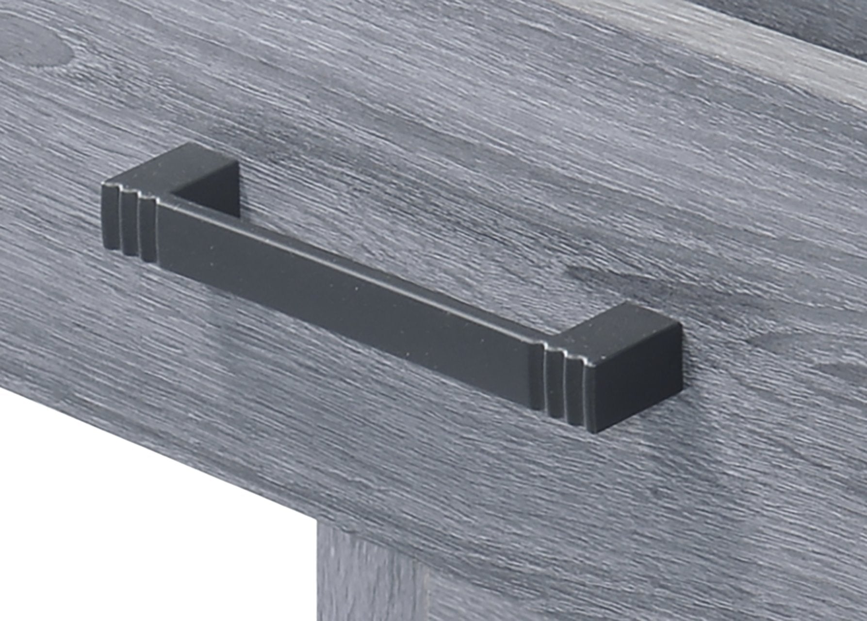 - Contemporary design with a smooth gray finish to coordinate with neutral or modern bedroom themes.