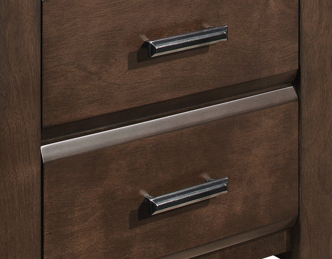 Elevate your bedroom with a contemporary nightstand that blends bold architectural lines and rich finishes for a refined, modern look. The espresso finish accentuates okume veneer and beveled drawer fronts, while gunmetal hardware and strong framing deliver a tailored, durable piece that works equally well in minimalist or transitional interiors.