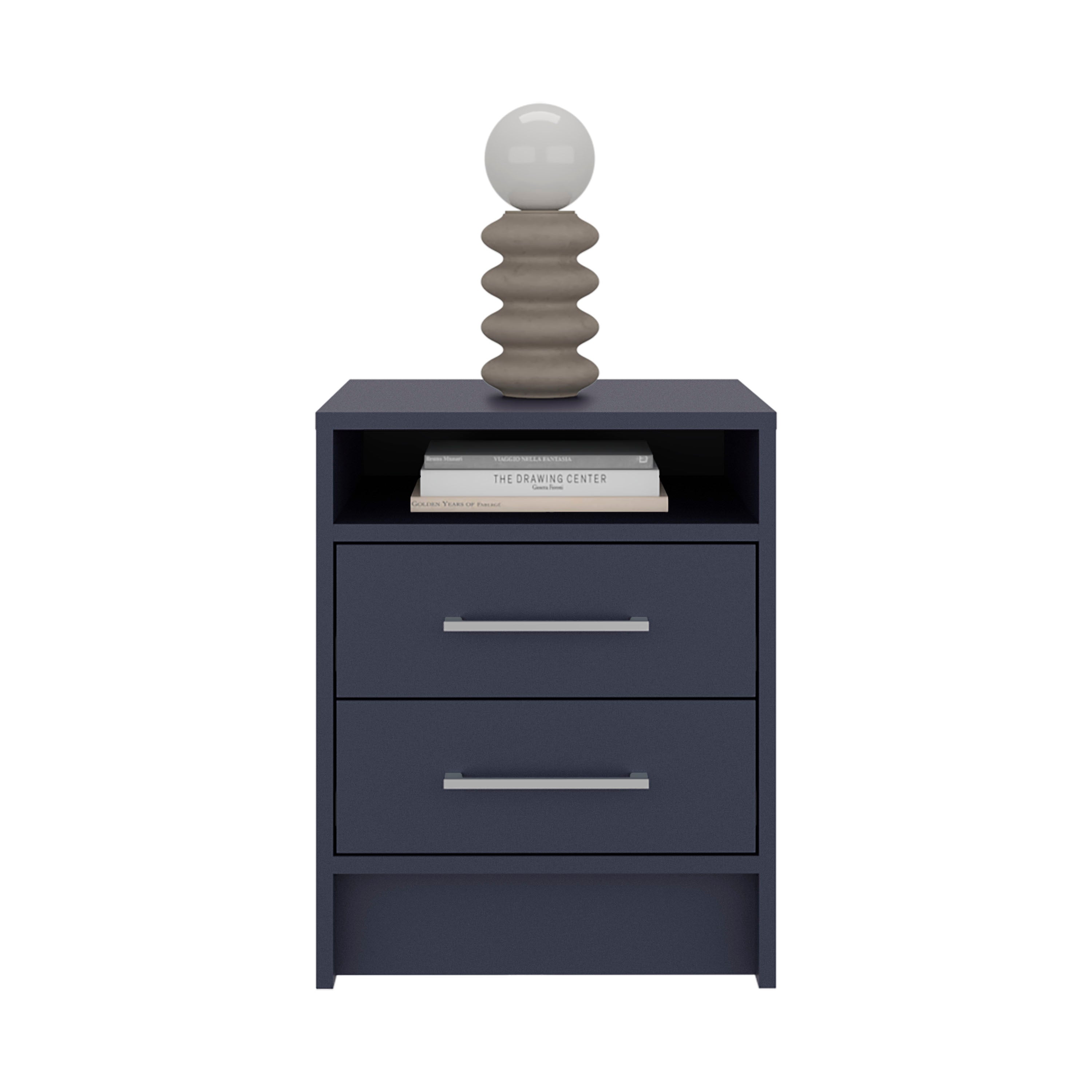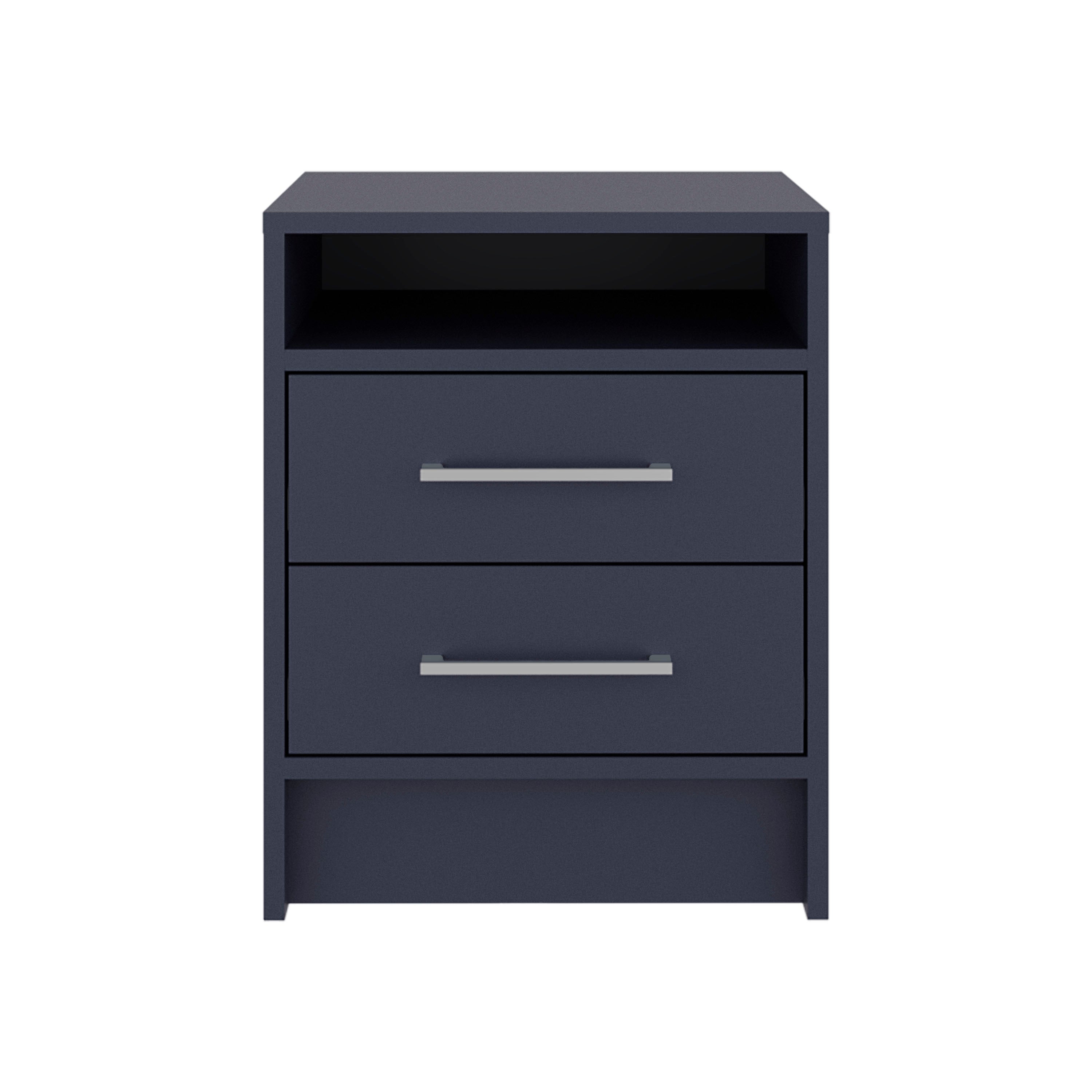 Bring modern functionality and clean lines to your bedroom with this navy blue nightstand, thoughtfully designed to balance display space and concealed storage. Its compact footprint suits small rooms or apartments while offering practical features for nightly essentials and electronics.
