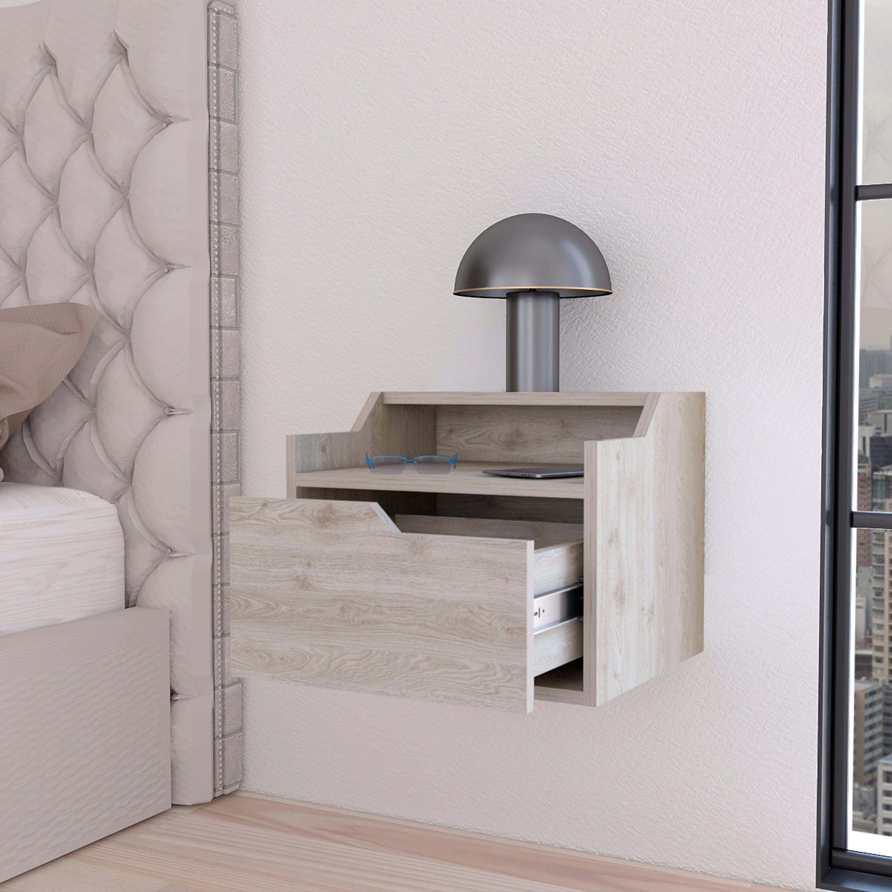 Streamline your bedroom with the Florence Floating Nightstand — a wall-mounted solution that blends modern minimalism with practical storage. Its clean lines and dual-tier display make it ideal for small spaces or contemporary interiors, while the single drawer keeps bedside essentials out of sight. Available in multiple finishes to coordinate with your decor, this piece mounts easily and delivers a polished, elevated look.