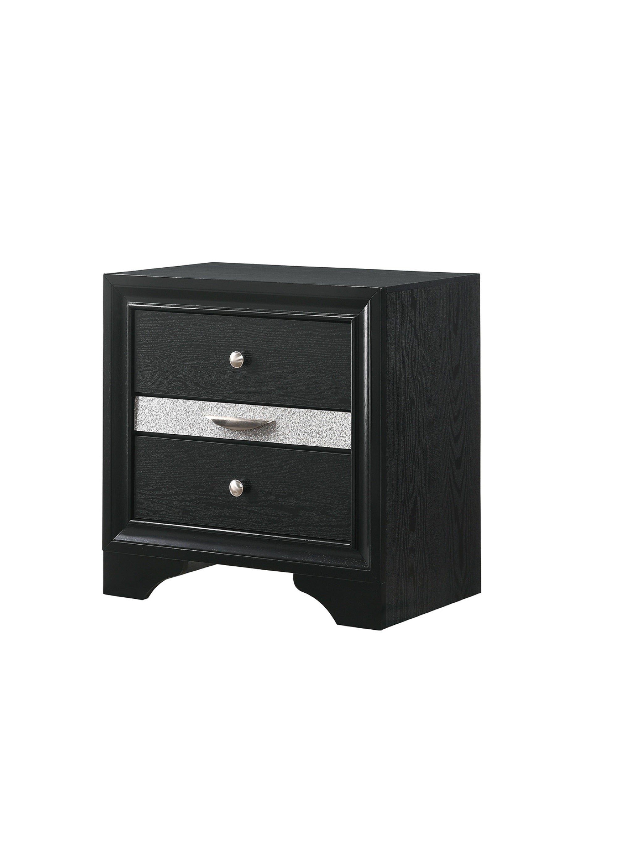 Elevate your bedroom with a modern, glamorous nightstand that blends sleek design with practical storage. Finished with a silver-accented pullout jeweler tray and two smooth-glide drawers, this piece offers both style and function—perfect for keeping bedside essentials organized and valuables safe.