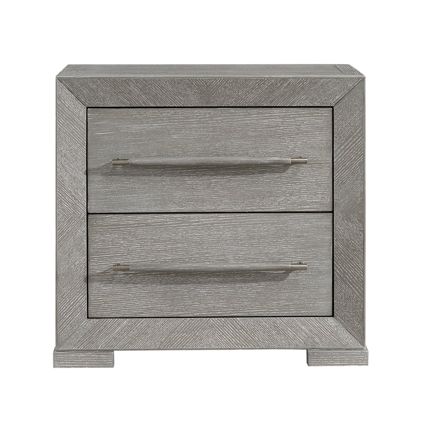 Upgrade your bedroom with this contemporary gray nightstand that balances clean, modern lines with practical storage. Crafted from embossed oak veneer and engineered wood, it pairs durable construction with a refined gray finish and subtle gray-tone wooden handles for a cohesive, upscale look. Two smooth-gliding dovetail drawers keep bedside essentials organized and easily accessible, while the compact footprint fits a variety of bedroom layouts.