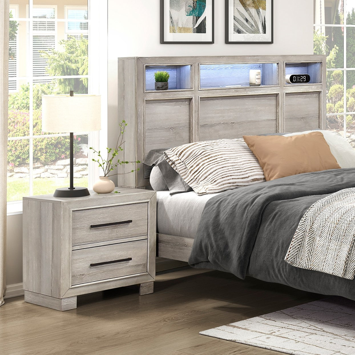 - Two smooth-gliding dovetail drawers for organized bedside storage and a clean exterior look.