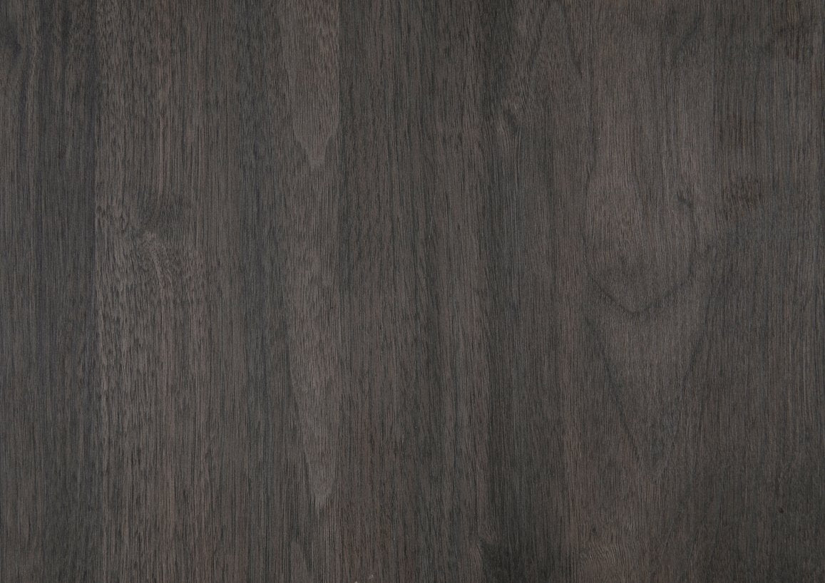 - Finish & Materials: Dark gray faux wood melamine veneer with brownish-gray tones and painted metal-finish base rail; antique silver metal bar hardware for a contemporary accent.