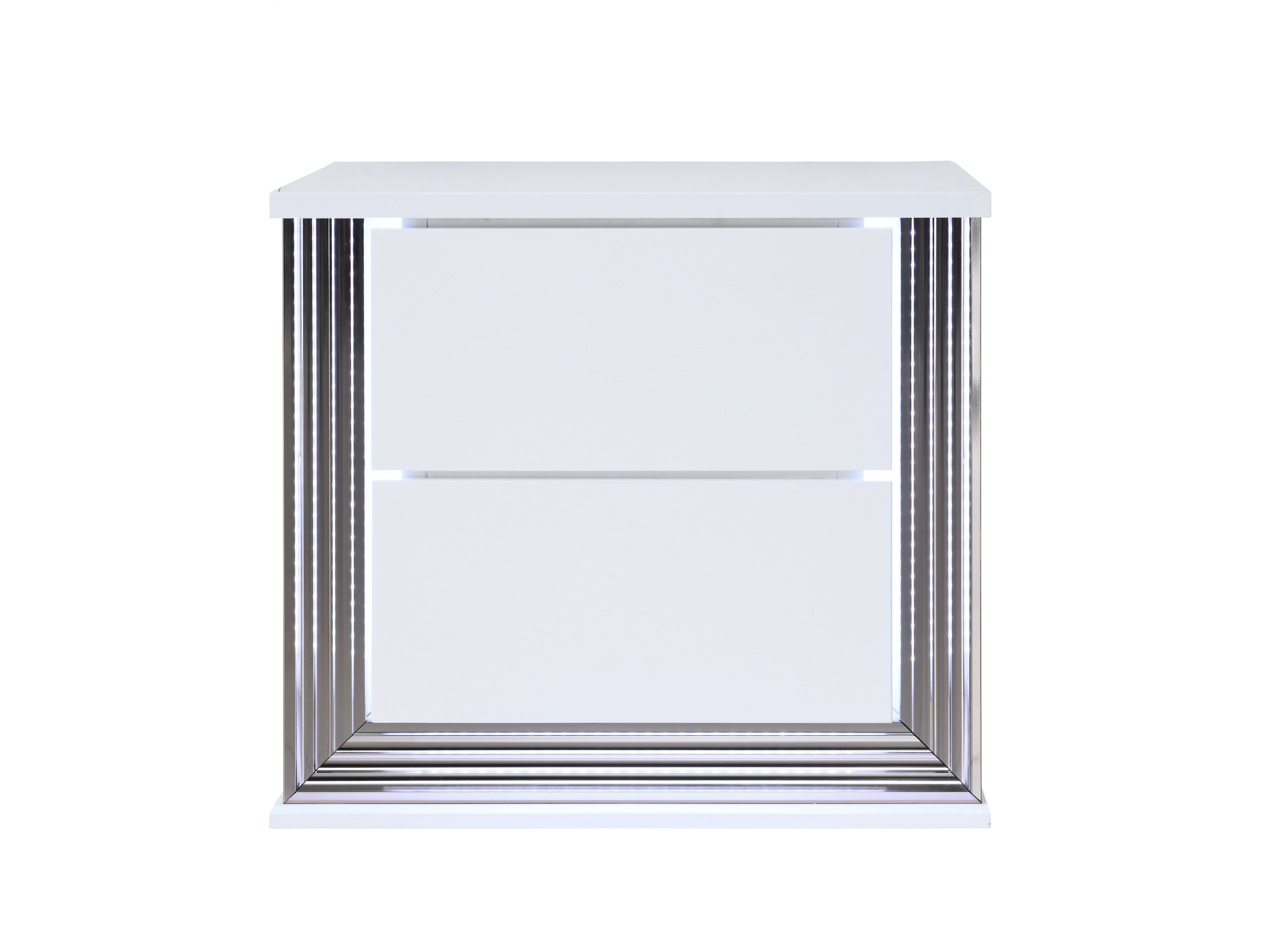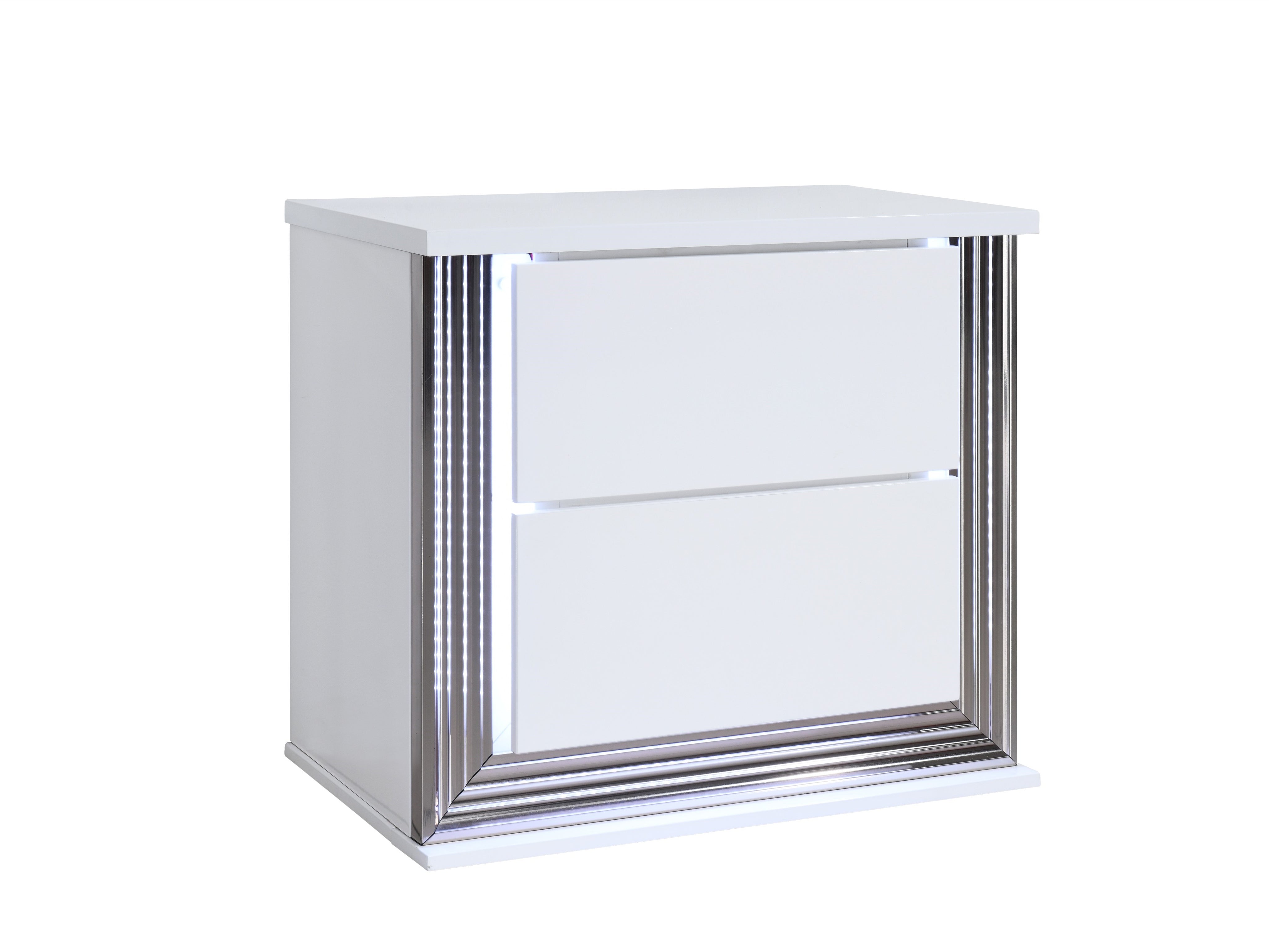 Elevate your bedroom with this smooth, contemporary nightstand that blends modern deco styling with practical features. Its high-gloss white finish and clean lines create a luxurious, sophisticated look, while integrated LED accent lighting adds gentle illumination and ambiance for nighttime convenience.