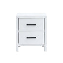 Bring modern elegance and practical storage to your bedroom with this sleek two-drawer nightstand. Crafted from a combination of solid and manufactured wood, it arrives fully assembled and features clean lines, distinctive V-shaped embossed drawer fronts, and removable black handles for a personalized look that complements a variety of decor styles.