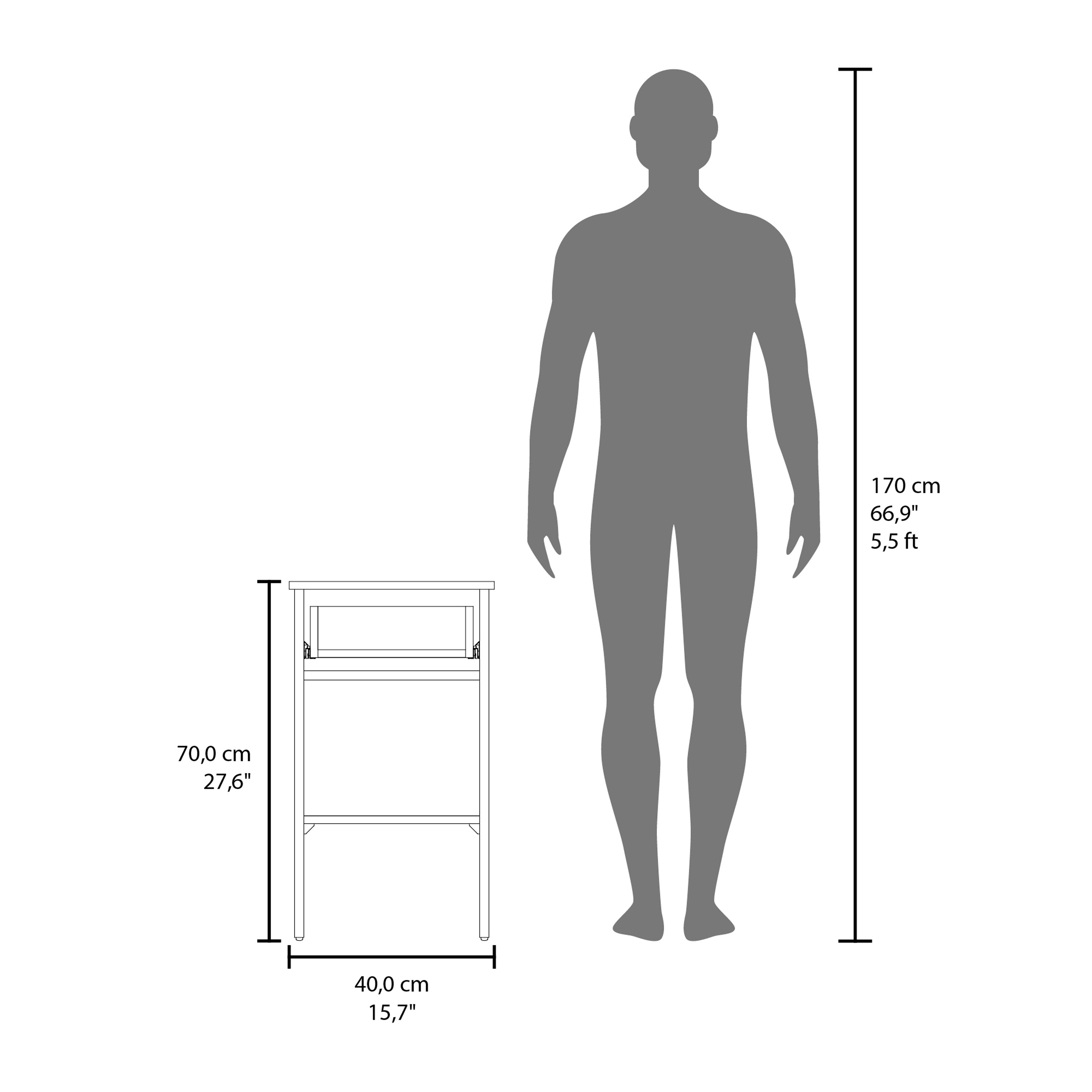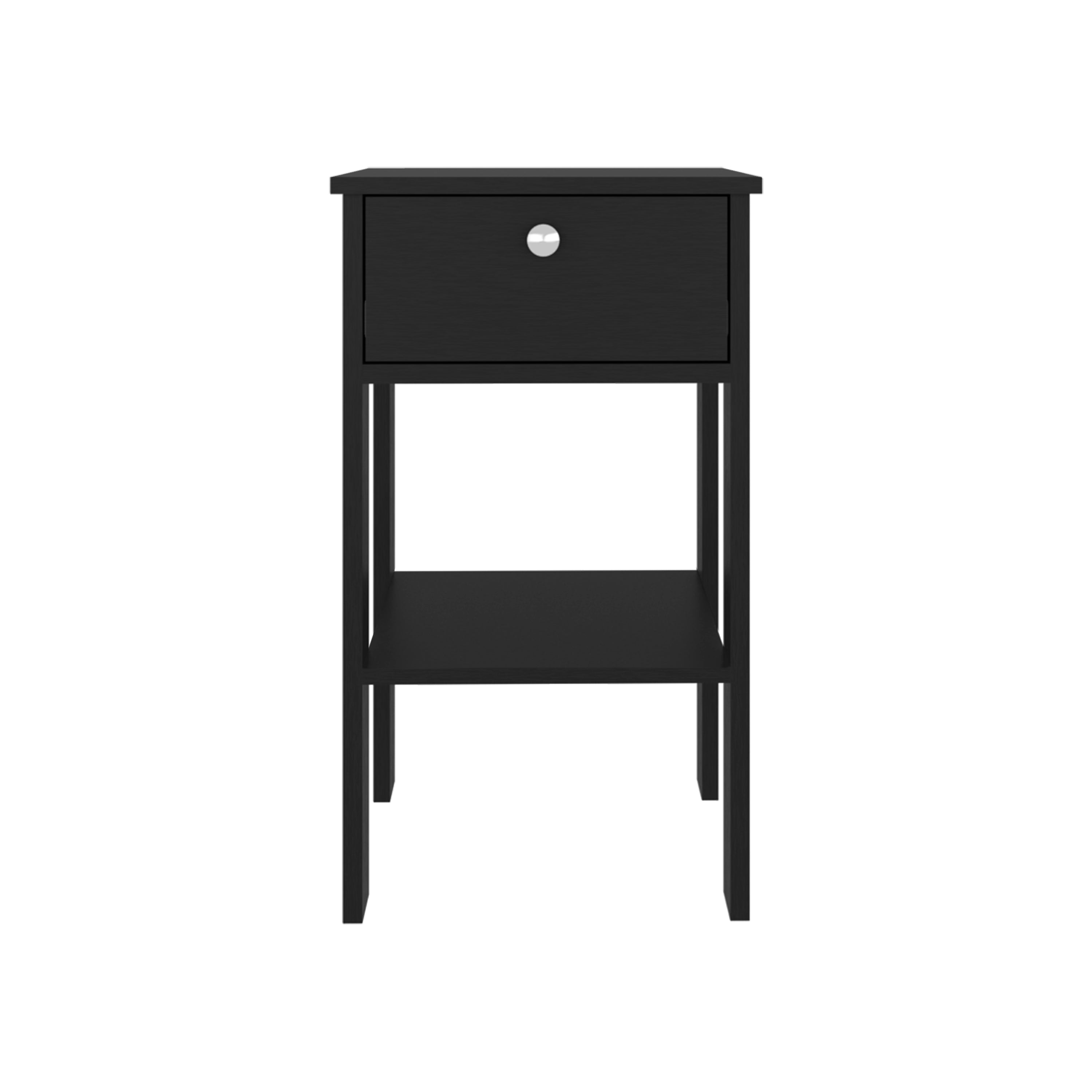- Compact structure with single drawer and open shelf offers practical storage without overwhelming small spaces.
