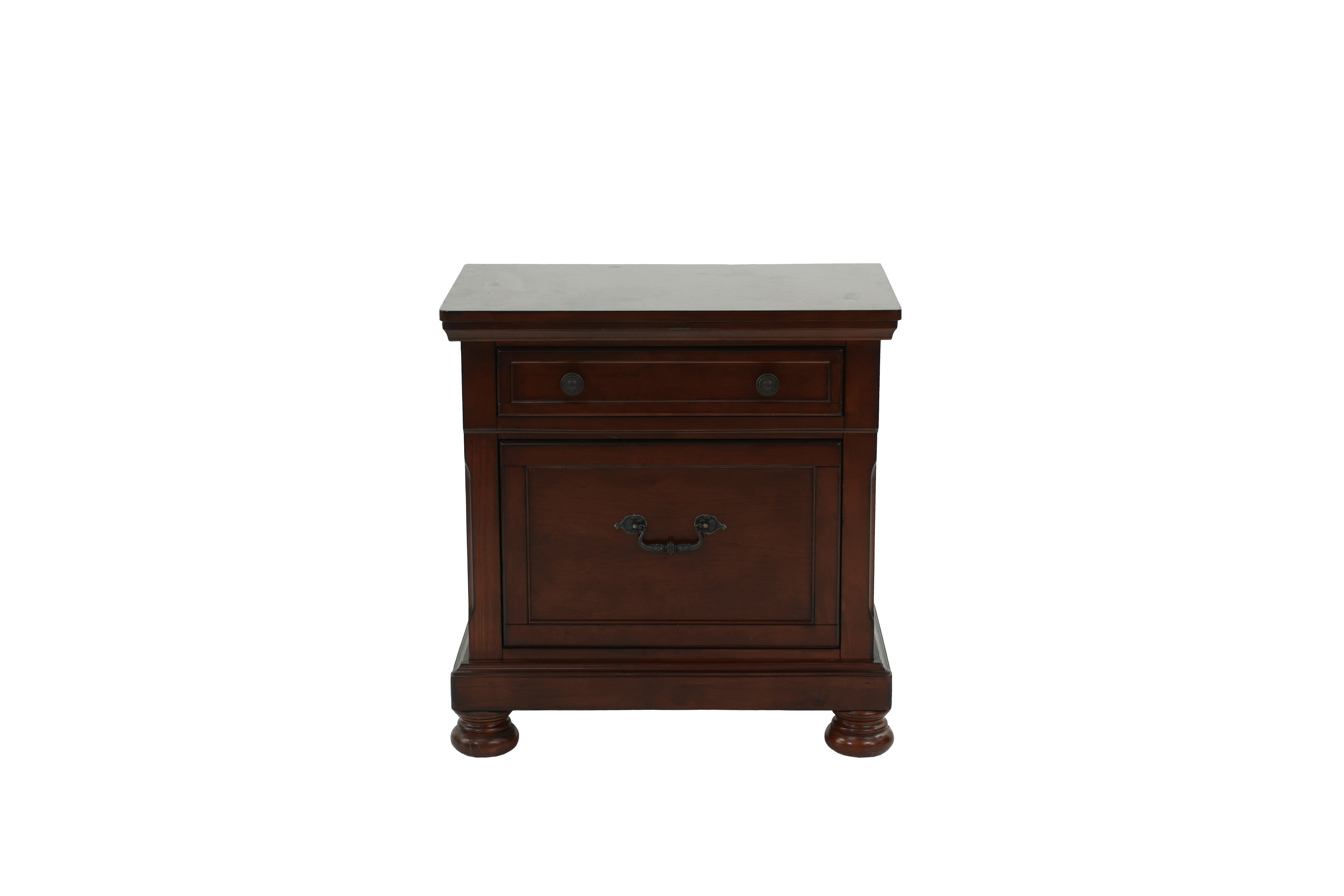 Bring timeless elegance and practical storage to your bedroom with this Antique Cherry nightstand. Crafted from rich wood with a warm dark brown finish, it pairs classic styling with everyday functionality—perfect beside any bed for nighttime essentials, a lamp, or decorative accents.