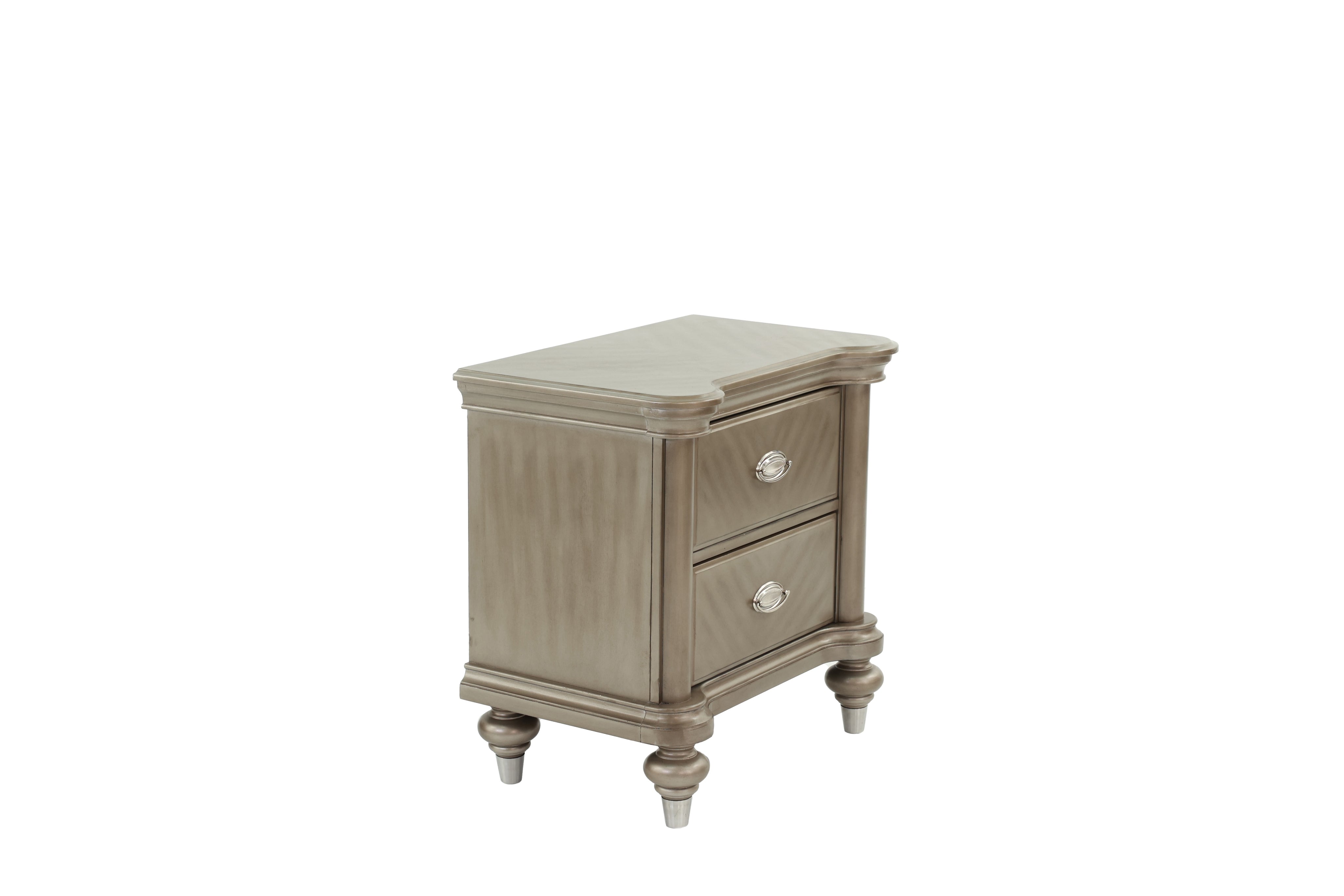 Enhance your bedroom with this elegant Champagne nightstand—crafted from solid wood with a soft, shimmering finish that complements contemporary and classic decor. Its compact footprint offers practical storage and surface space for a lamp, books, and nighttime essentials while adding a refined touch to your sleeping area.