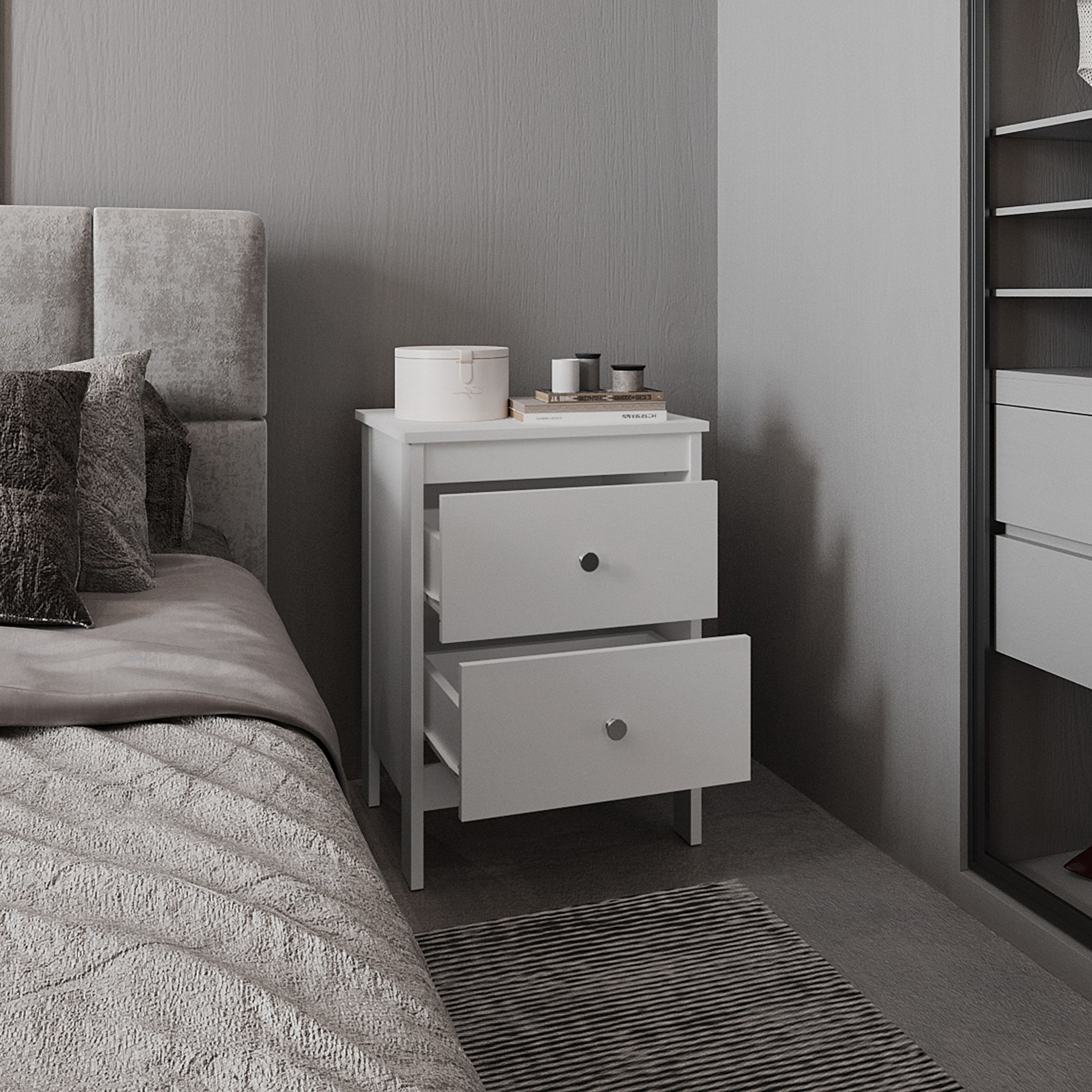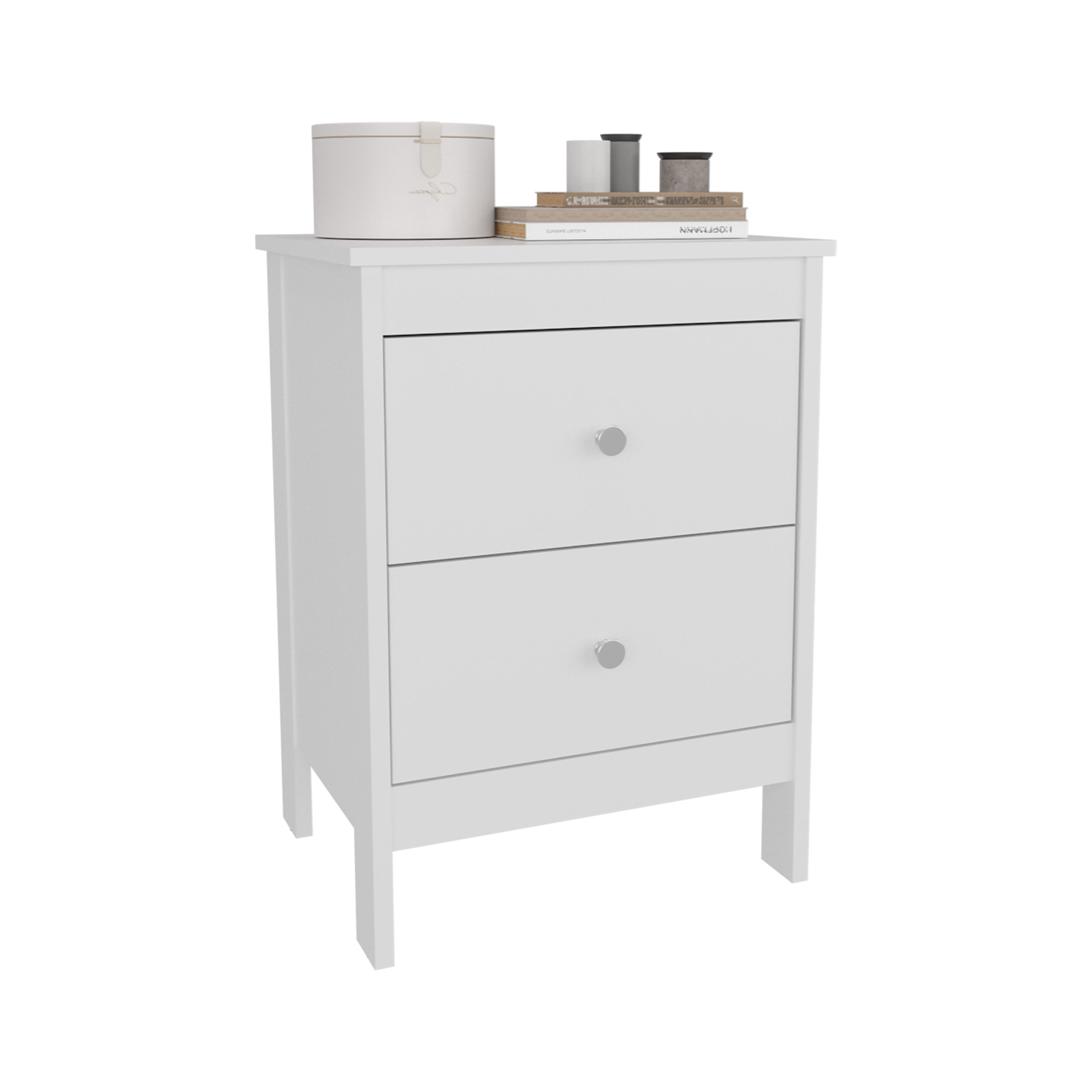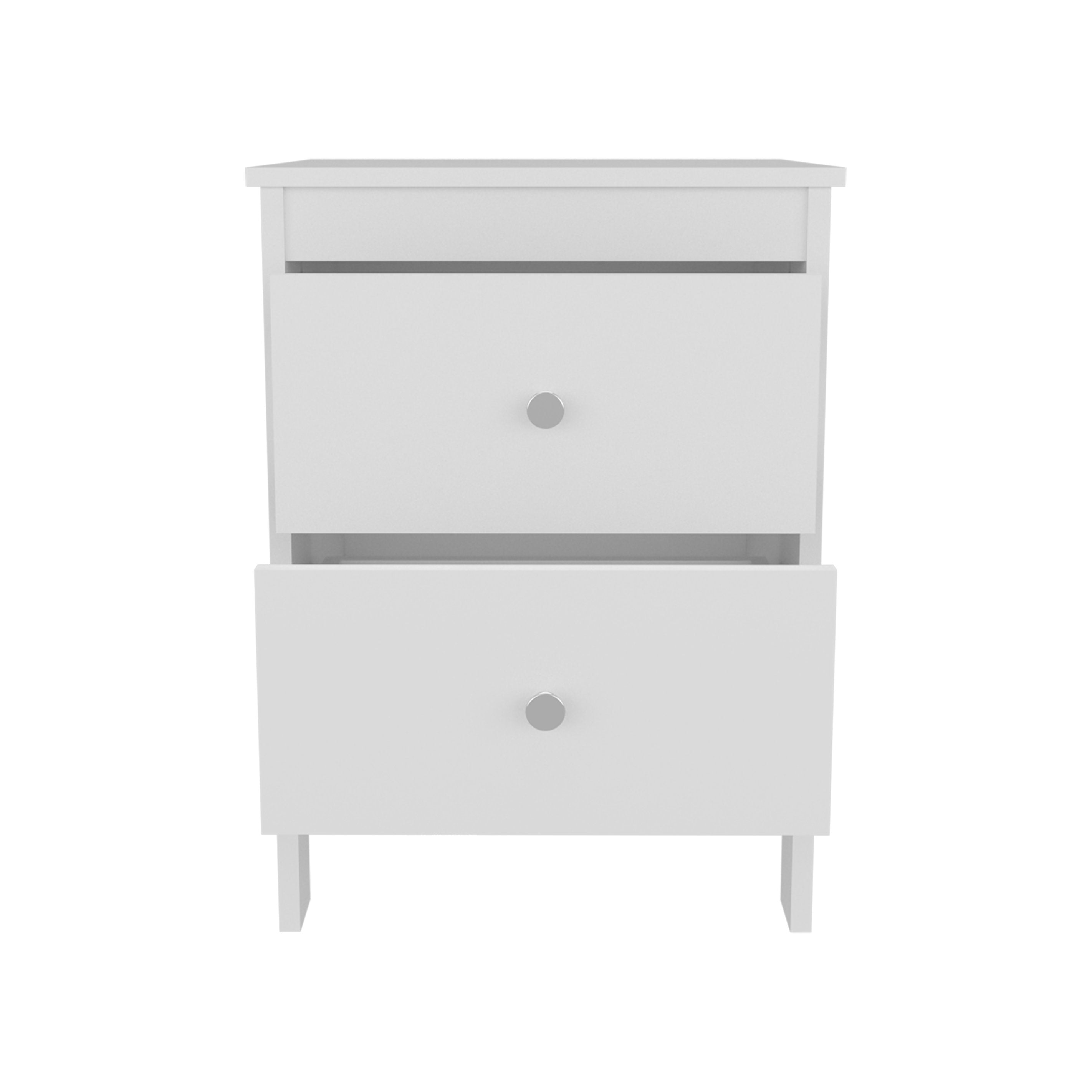 Add a clean, modern touch to your bedroom with this compact white nightstand. Thoughtfully designed for everyday use, it provides practical storage, durable construction, and a versatile surface for a lamp, books, or morning essentials—perfect for both small and larger bedrooms seeking a streamlined look.