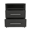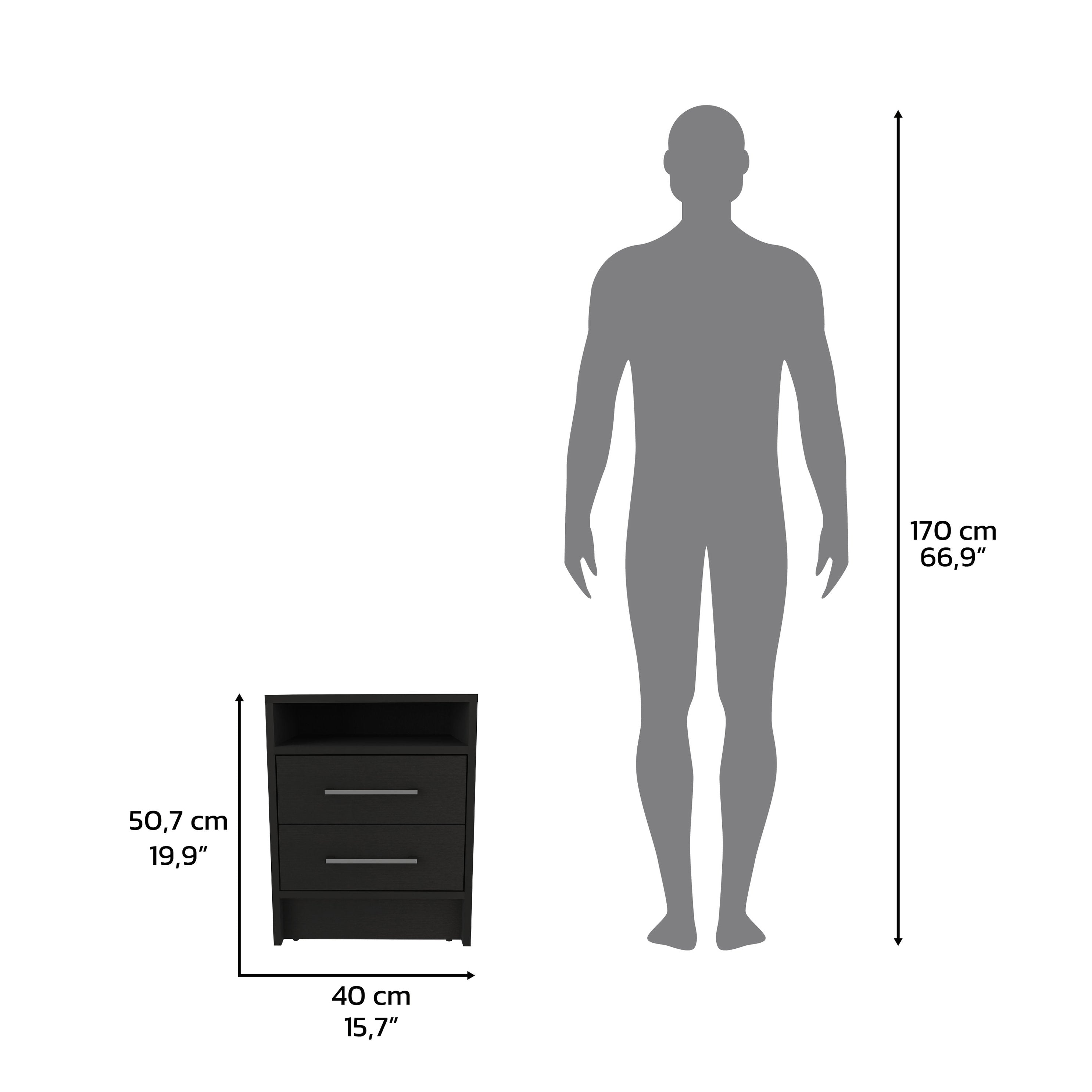 - Storage: Two spacious drawers for concealed storage of bedside items plus one open shelf for books, chargers, or decorative accents