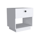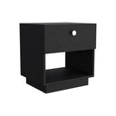 Bring simple, modern functionality to your bedroom with this compact single-drawer nightstand in sleek black. Designed for small spaces, it combines an open display shelf, a secure drawer, and a roomy top surface to keep bedside essentials organized and within reach.