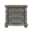 Elevate your bedroom with a nightstand that blends traditional craftsmanship and vintage charm. Meticulously detailed, this piece from the Rachelle Collection brings warm, weathered pecan tones and classic millwork to your bedside—providing functional storage with an antique-inspired silhouette that complements timeless and transitional decor.