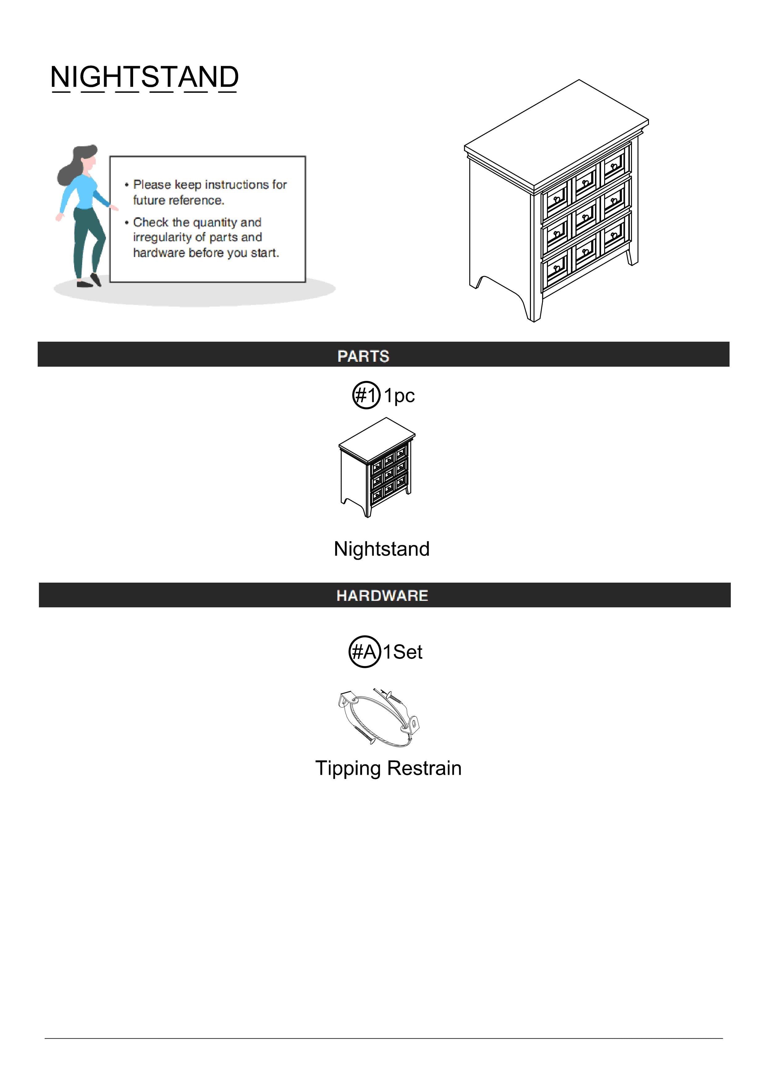 - Includes: 1 pc nightstand only. Bed, dresser, mirror, and chest are not included.