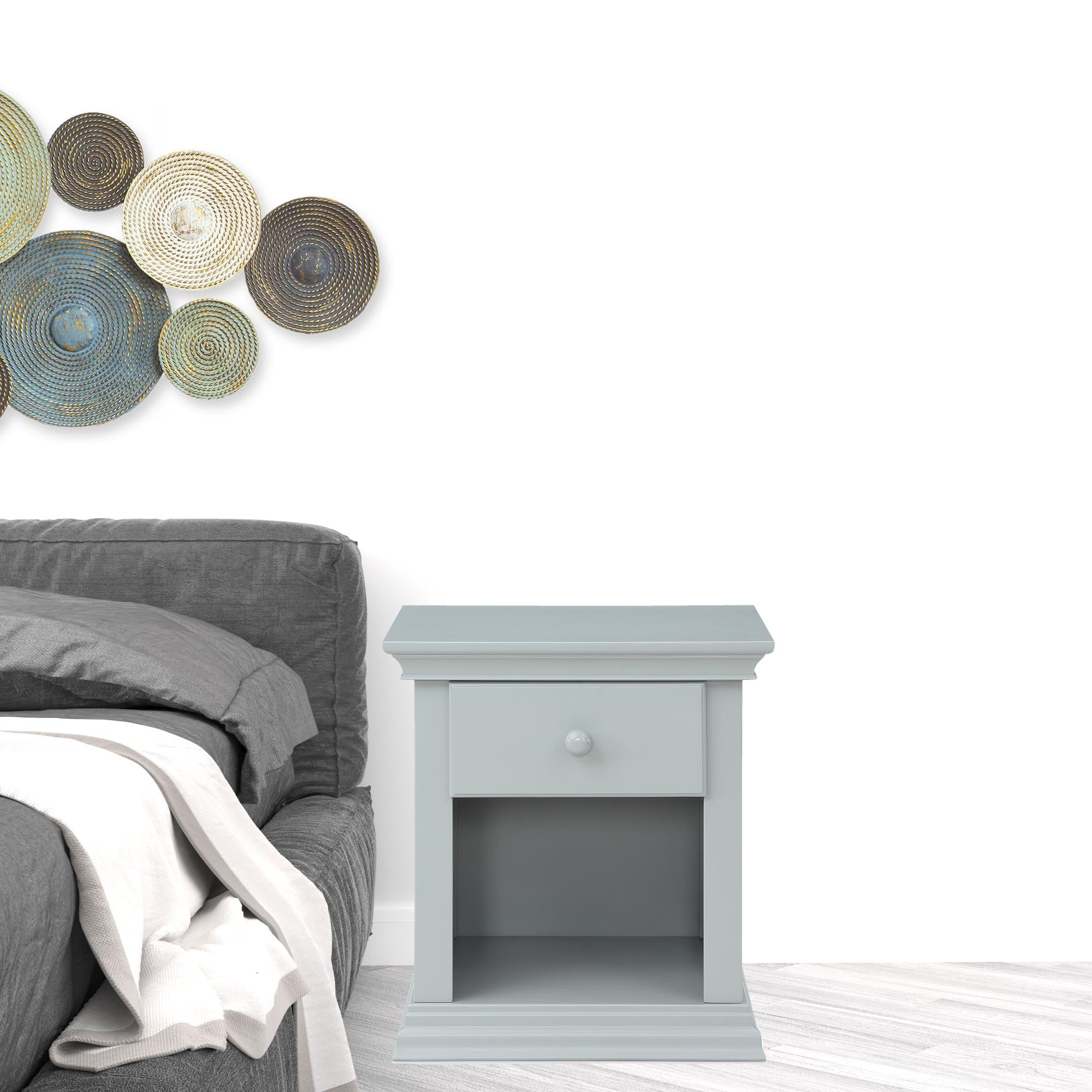- Classic One Drawer Nightstand with Open Cubby Space.