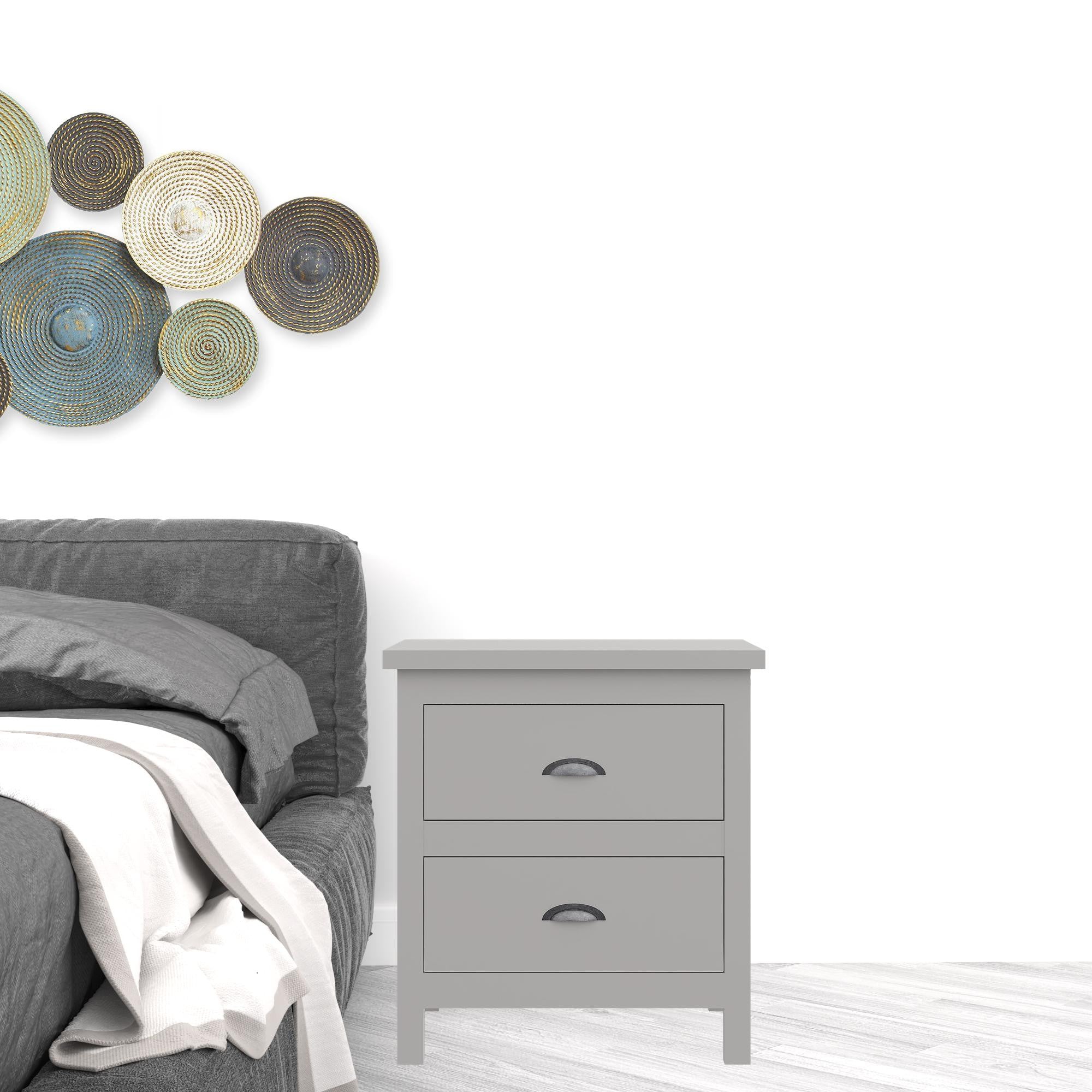 - Solid Wood Nightstand with two drawers for hidden storage of essentials.