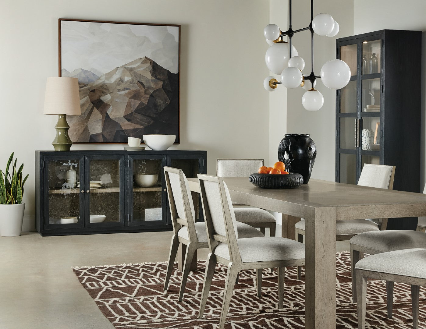 - Collection Features: Capturing the essence of nature’s organic color palette and the aura of a rustic mountain cottage, Hooker Furniture introduces the Linville Falls collection. The whole home collection is designed for younger consumers looking for casual and contemporary furniture. Characterized by its rustic, weathered finish and clean lines paired with organic grain patterns, Linville Falls is constructed with split oak solids and veneers and has an overall organic aesthetic. It is featured in a soft Smoked Gray finish mixed with a Charred Black finish that is achieved through Shou Sugi Ban, a Japanese technique that creates an elegant burnt wood look. Its moderate scaling and fresh silhouettes offer a refreshing juxtaposition mixing old with new.