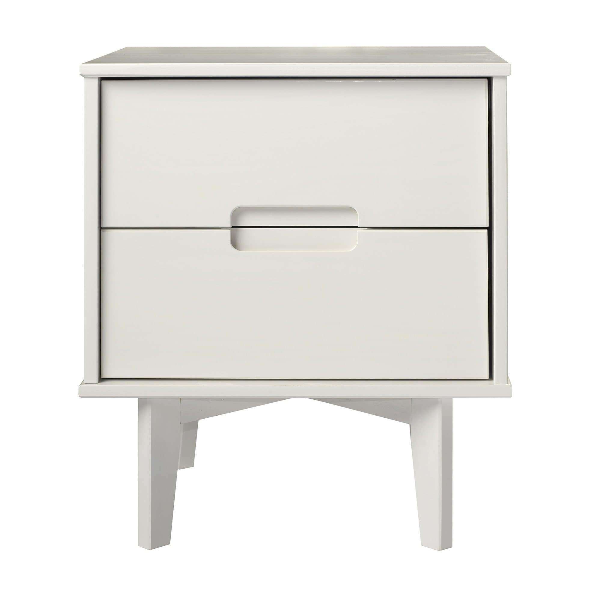 This nightstand will add a stylish finish to your bedroom with the mid century modern and transitional design. With a solid pine wood construction in a stained finish, featuring angled legs and a unique cutout handles that add to the design. Including two storage deep drawers for putting away books, accessories, and more. This nightstand can also be used as a side table or end table in your living room beside your couch or armchair.