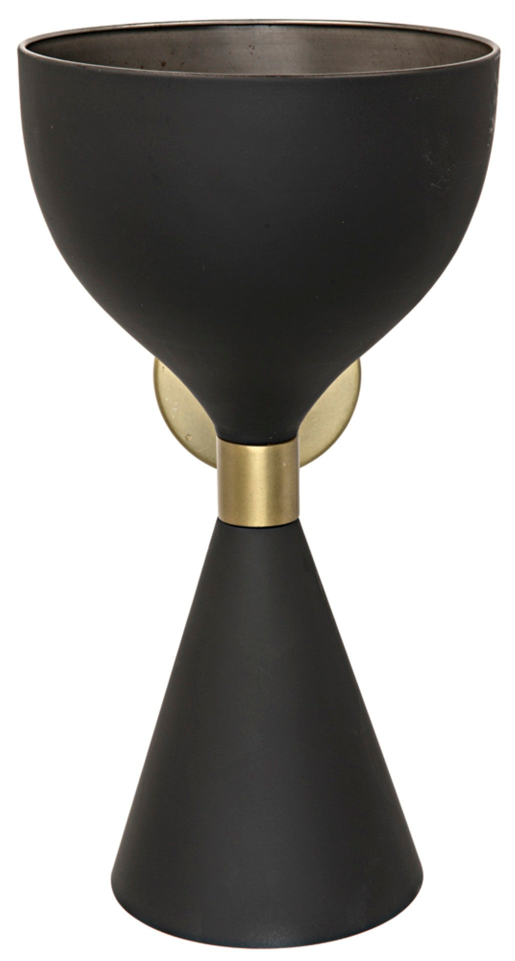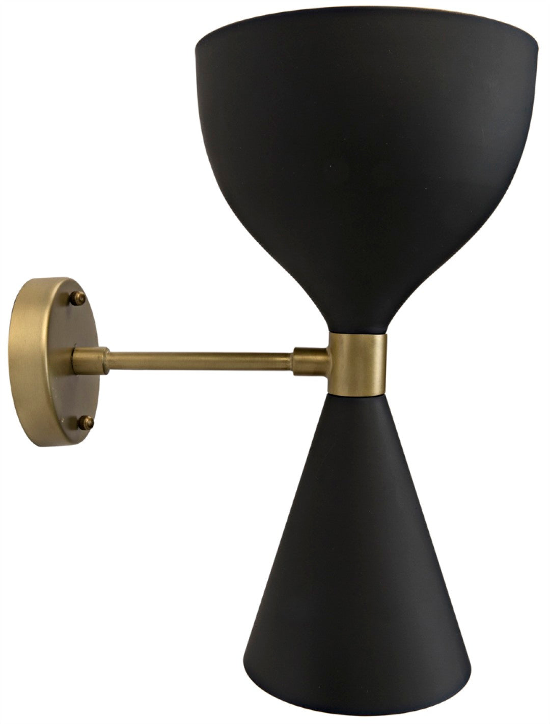 Elevate your modern decor with the Aegeon Sconce — a sculptural, hourglass-shaped wall light that combines contemporary lines with a refined dual-finish palette. Crafted from solid iron with a matte black body and antique brass accents, this sconce delivers both visual interest and durable performance, making it an ideal choice for hallways, living rooms, bedside reading, or accent lighting in commercial spaces.