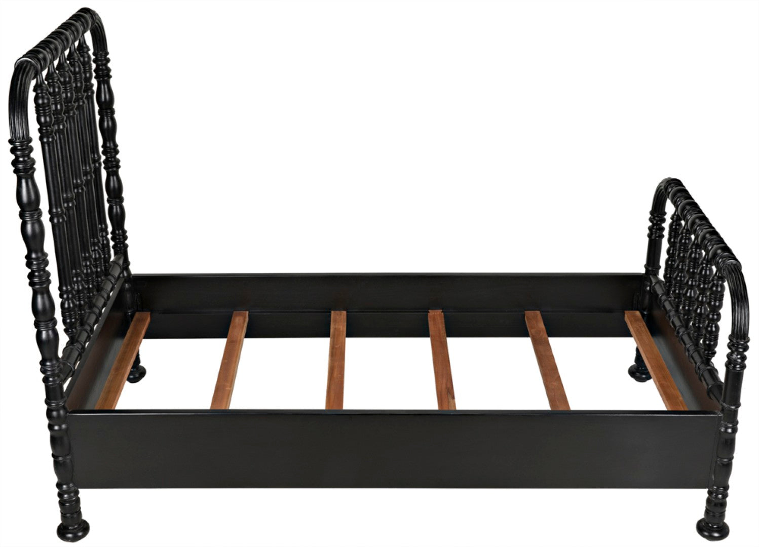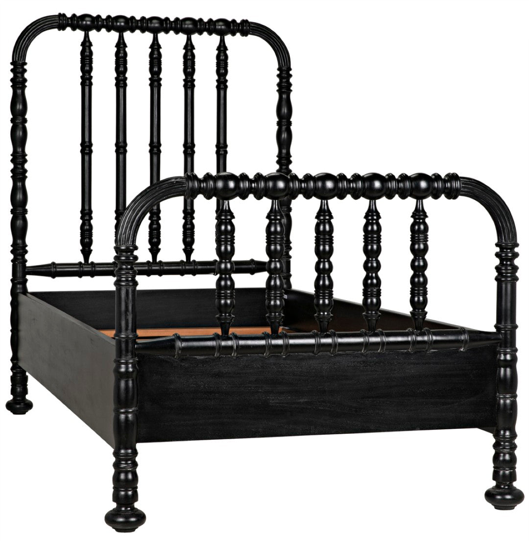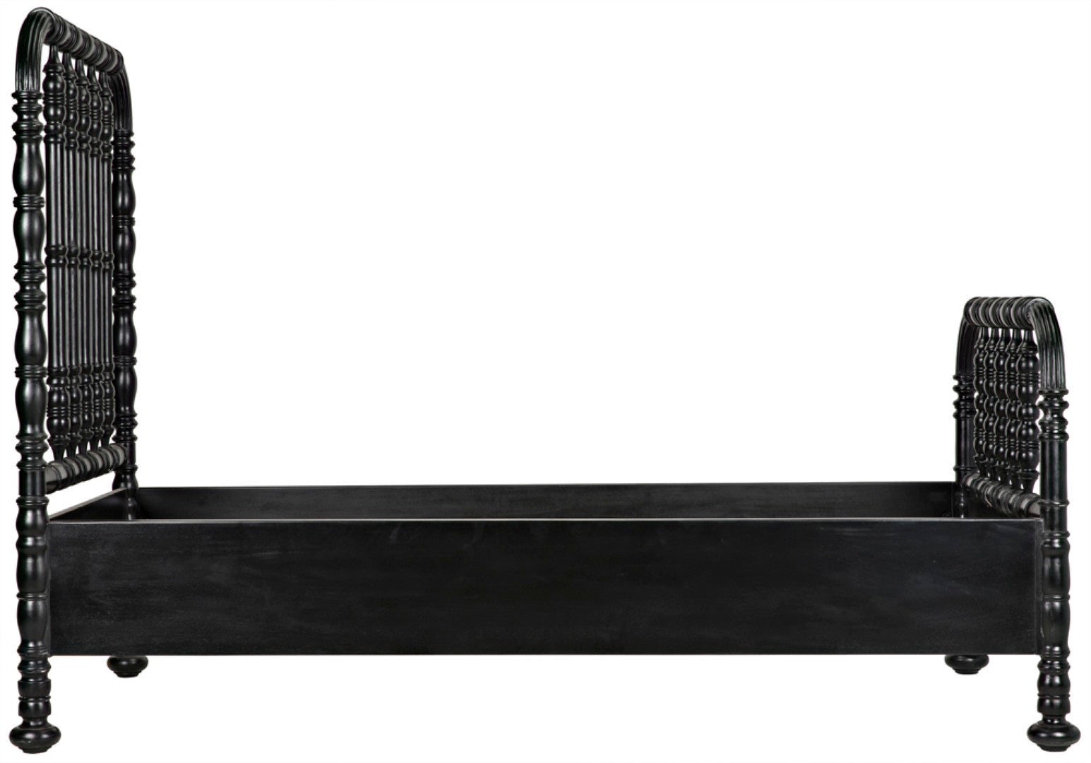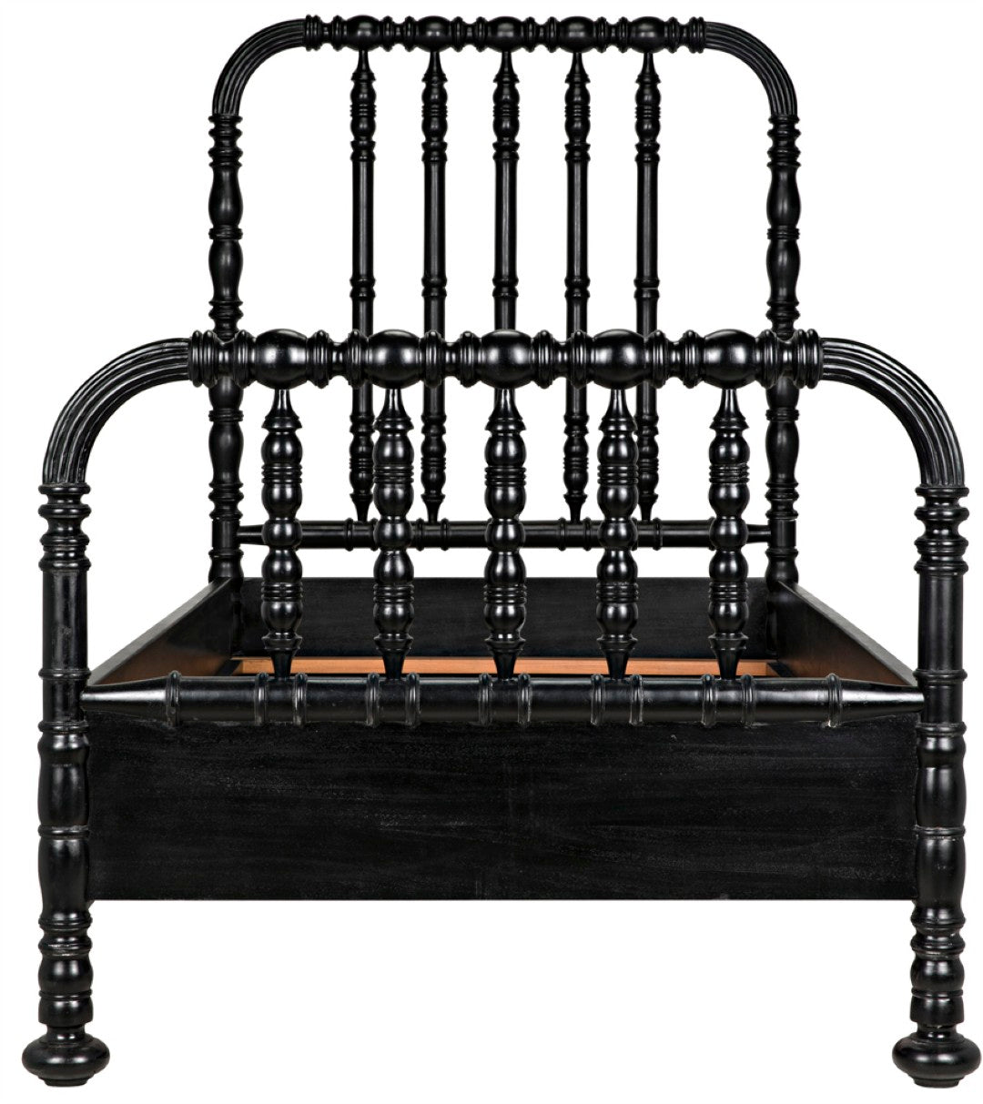 This elegant twin bed combines classic spindle craftsmanship with a refined, contemporary finish—bringing timeless character and artisanal detail to a compact bedroom. Hand-carved from solid mahogany and finished in a hand-rubbed black, it offers durability and visual warmth while the spool (bubble) design adds a sculptural focal point that complements both traditional and modern decor.